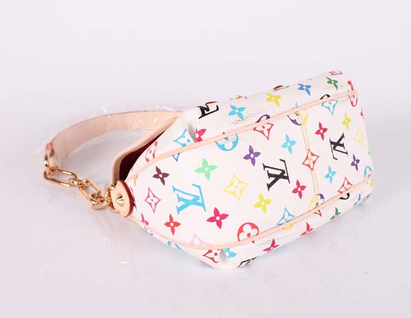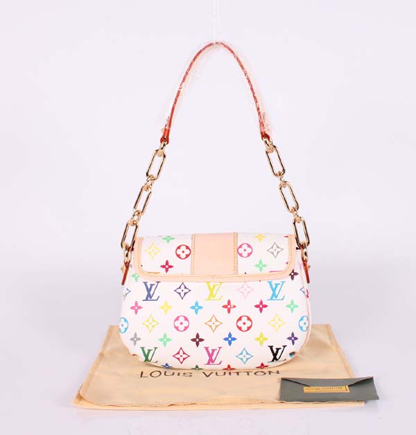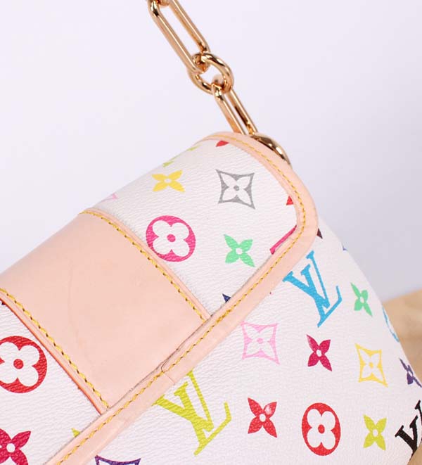 - 结构:- 天然牛皮饰边- 金色黄铜配饰- 肩背带- 内贴袋- 柔软的超细纤维内衬- Monogram Multicolore系列由村上隆专为路易威登设计