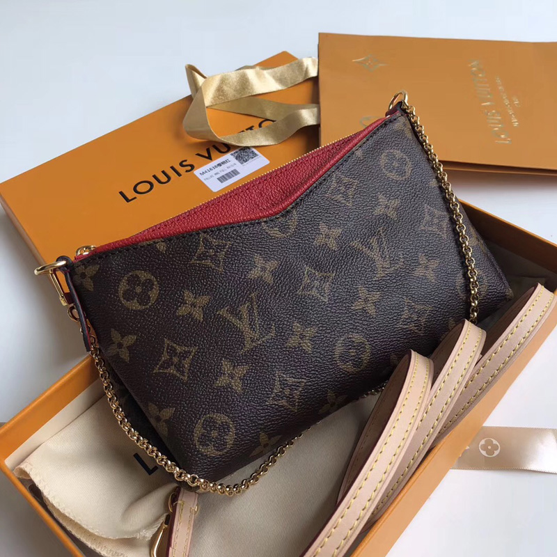 - M41638 LV Pallas Cluth 手袋 LV Monogram帆布女包 LV链条包 红色/玫红