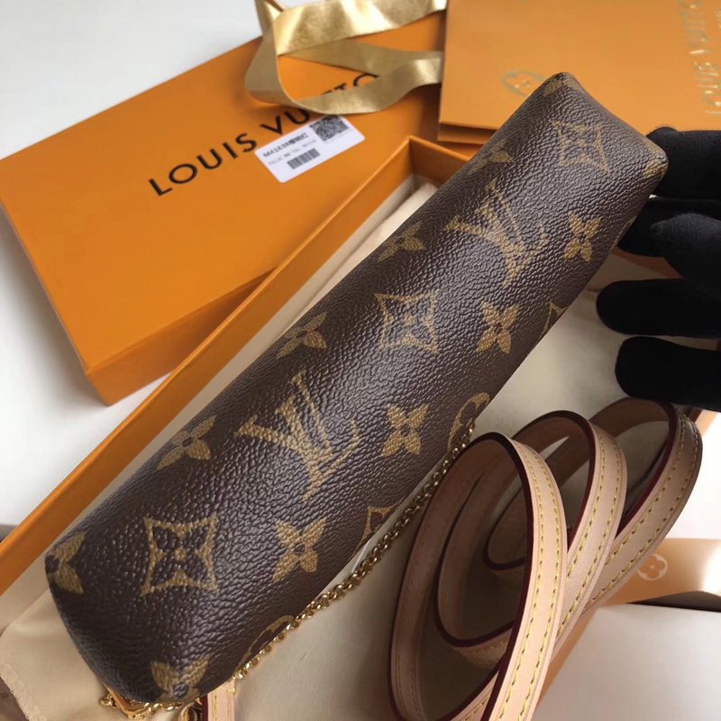 - 结构:- Monogram帆布- 天然牛皮饰边- 金色包链,适宜多种背挎方式(肩背/斜挎)- 金色的金属配件- 1个中部拉链隔层- 1个外部前袋