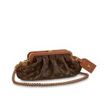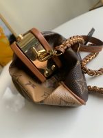- 结构:Monogram 涂层帆布 小牛皮饰边 超细纤维内衬 金属件 可拆卸编织皮革链条肩带,可肩背或斜挎 按扣开合