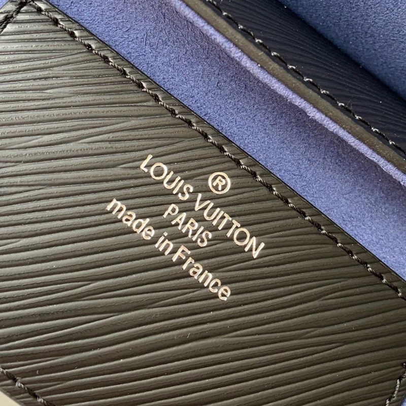 - 结构:Epi皮革 磨面牛皮饰边 微纤维内衬 银色金属饰件 可拆卸、可调节皮质包带 短链手柄,梭织皮革装饰 独特的可脱卸LV饰件 标志性LV Twist扭锁 大容量内袋