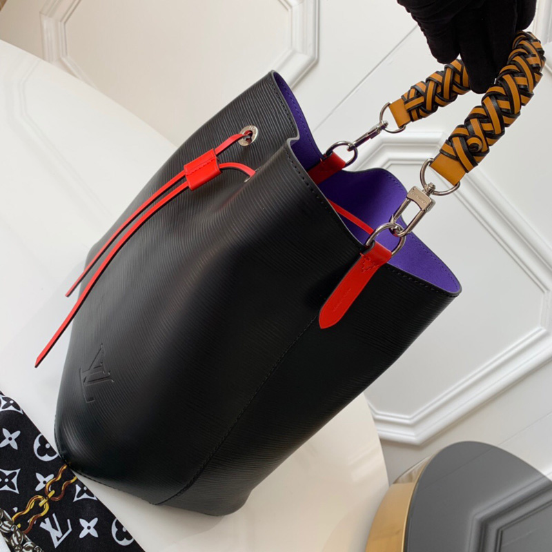 - 详细介绍:NeoNoe 手袋源自 1932 年设计的香槟酒袋,此次取材 Epi 皮革塑造水桶包型,搭配匠心编织的手柄迎接 2019 秋季。经典元素融合彩色抽绳和孔眼等摩登细节,可调节肩带打造舒适斜挎体验。