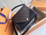 • M54439 LV DOUBLE V 手袋 LV女包 翻盖式拼色老花单肩手提包 黑色