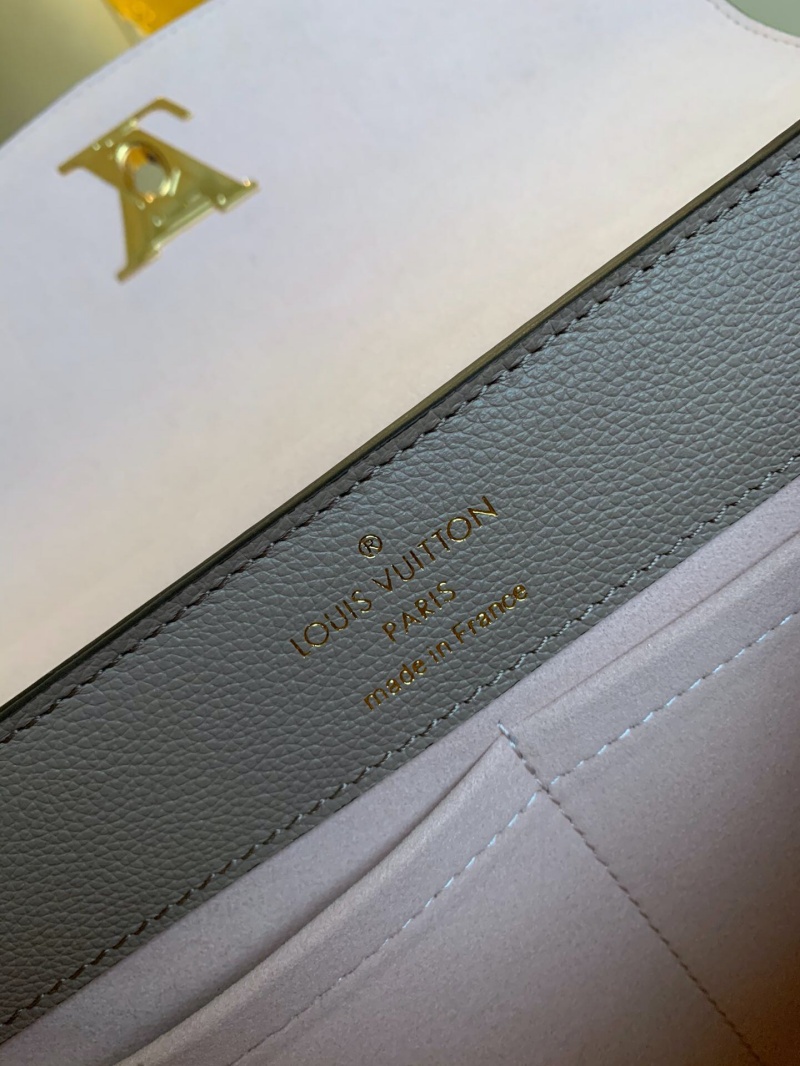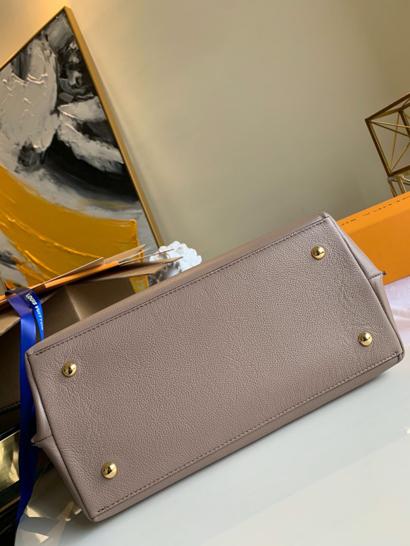 - 结构:软粒面小牛皮 软粒面小牛皮饰边 超细纤维内衬 金属件 顶部手柄,可手提或肘挎 可拆卸、可调节肩带,可肩背或斜挎 LV 旋扣 钥匙包 内贴袋 手机内袋 金属底钉