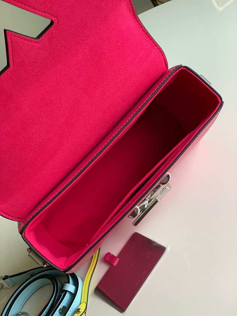 - 结构:Epi 粒面皮革 超细纤维内衬 金属件 可拆卸、可调节皮革肩带,可肩背或斜挎 有机玻璃手柄,可手提 变形版 LV Twist 扭锁 内贴袋,配有可拆卸镜子 大号内袋