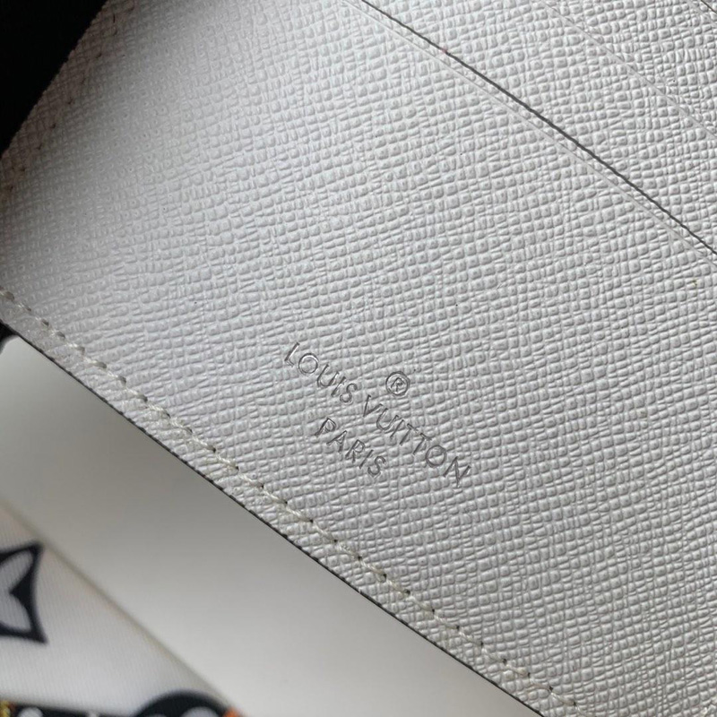 • 结构:Monogram White 帆布牛皮内衬印花贴饰银色金属件两个隔层,可放钞票和票据两个侧面夹层,可放收据两个名片夹层三个卡片夹层