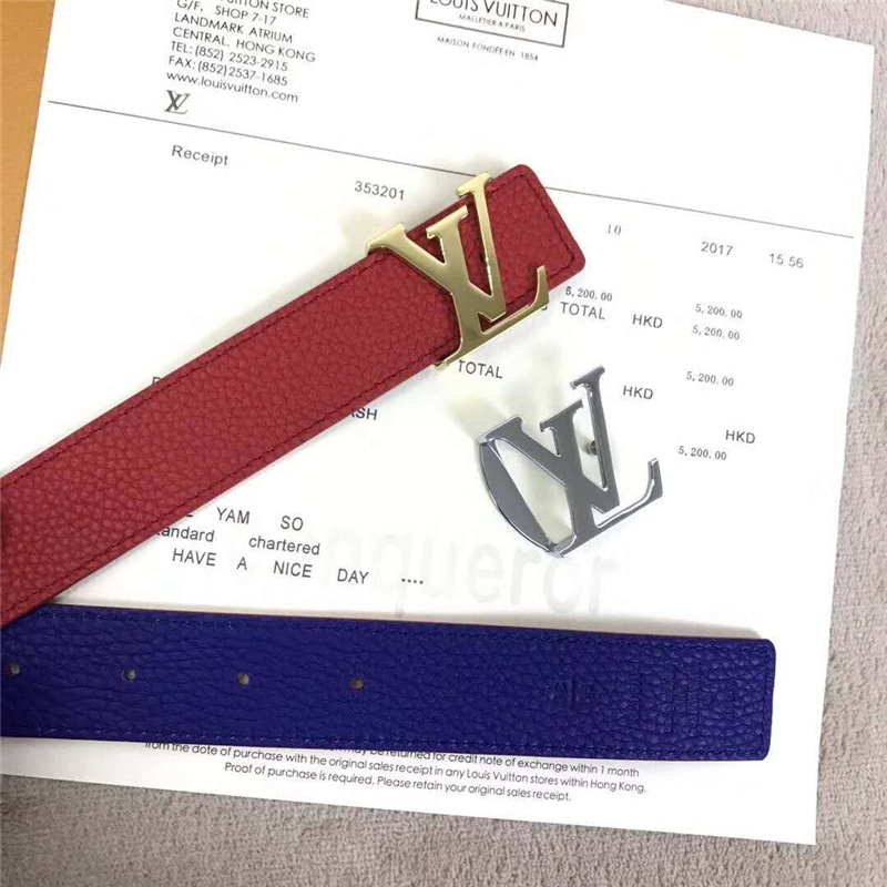 - M9170 LV皮带 专柜新包装 女神款腰带 进口牛皮 双面双色可用 红配紫蓝