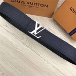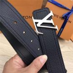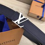 M9904 LV皮带 手搓纹小牛皮 双缝线设计 双面可用 海军蓝带哑光银扣