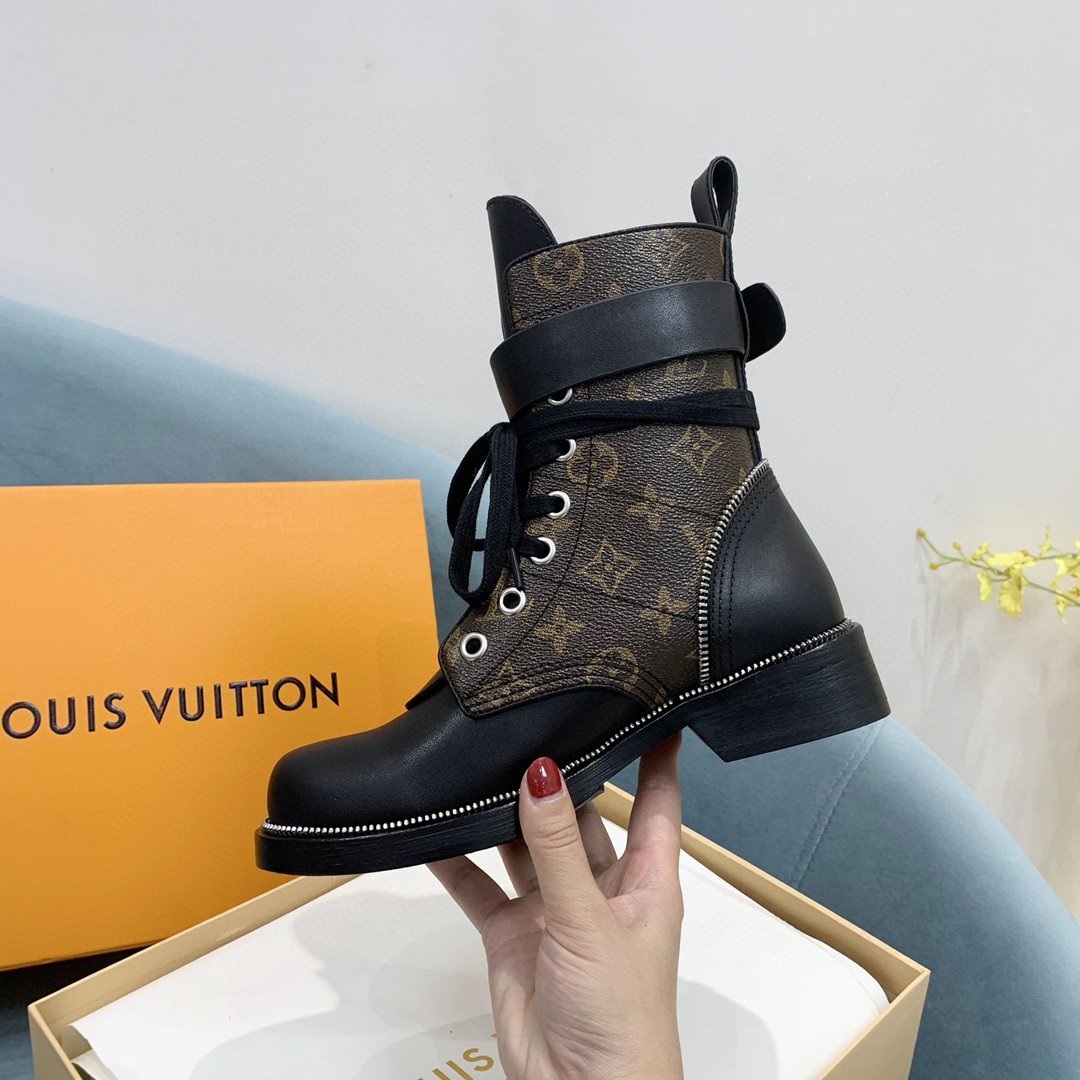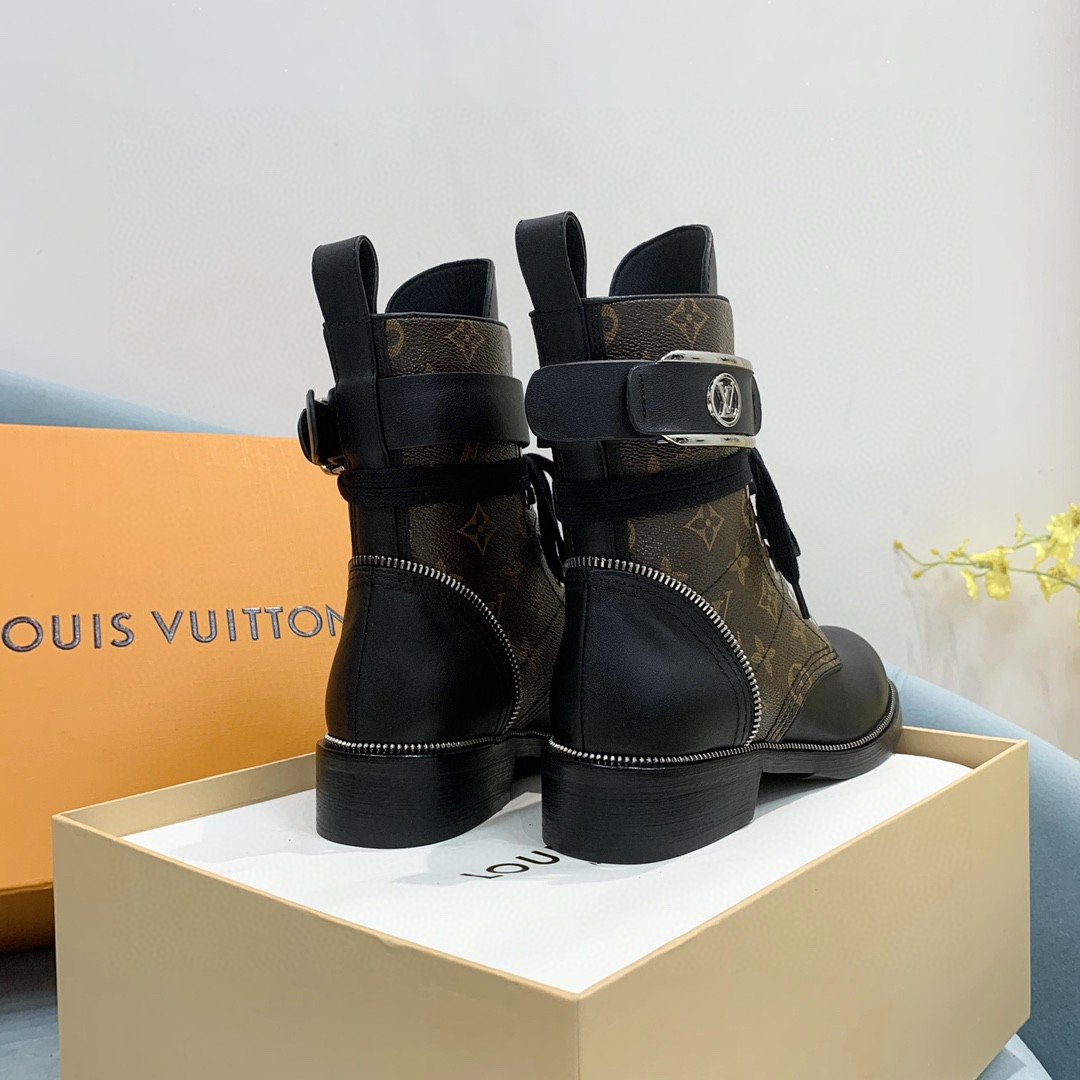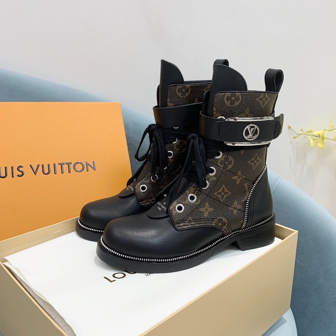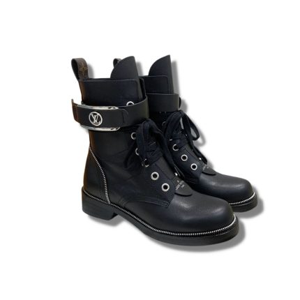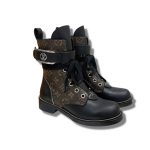 Monogram 帆布制成的 Metropolis Flat Ranger 是路易威登对流行军靴的诠释。该款式以精致的细节而著称,例如鞋舌上的贴片上刻有品牌标志的金色浮雕。耐磨的外底完善了此设计。