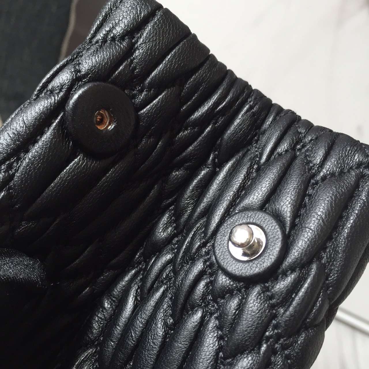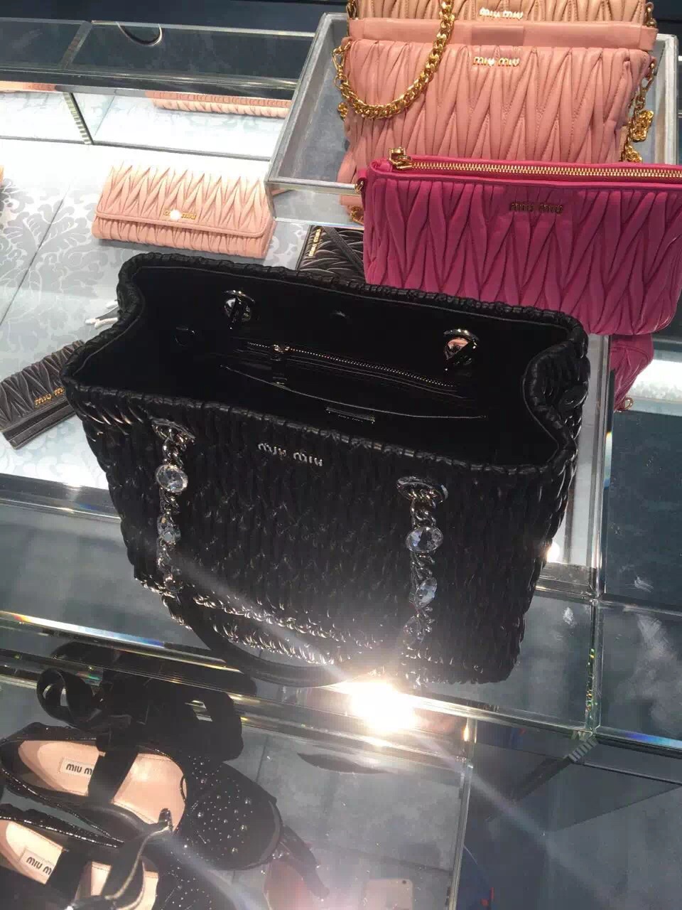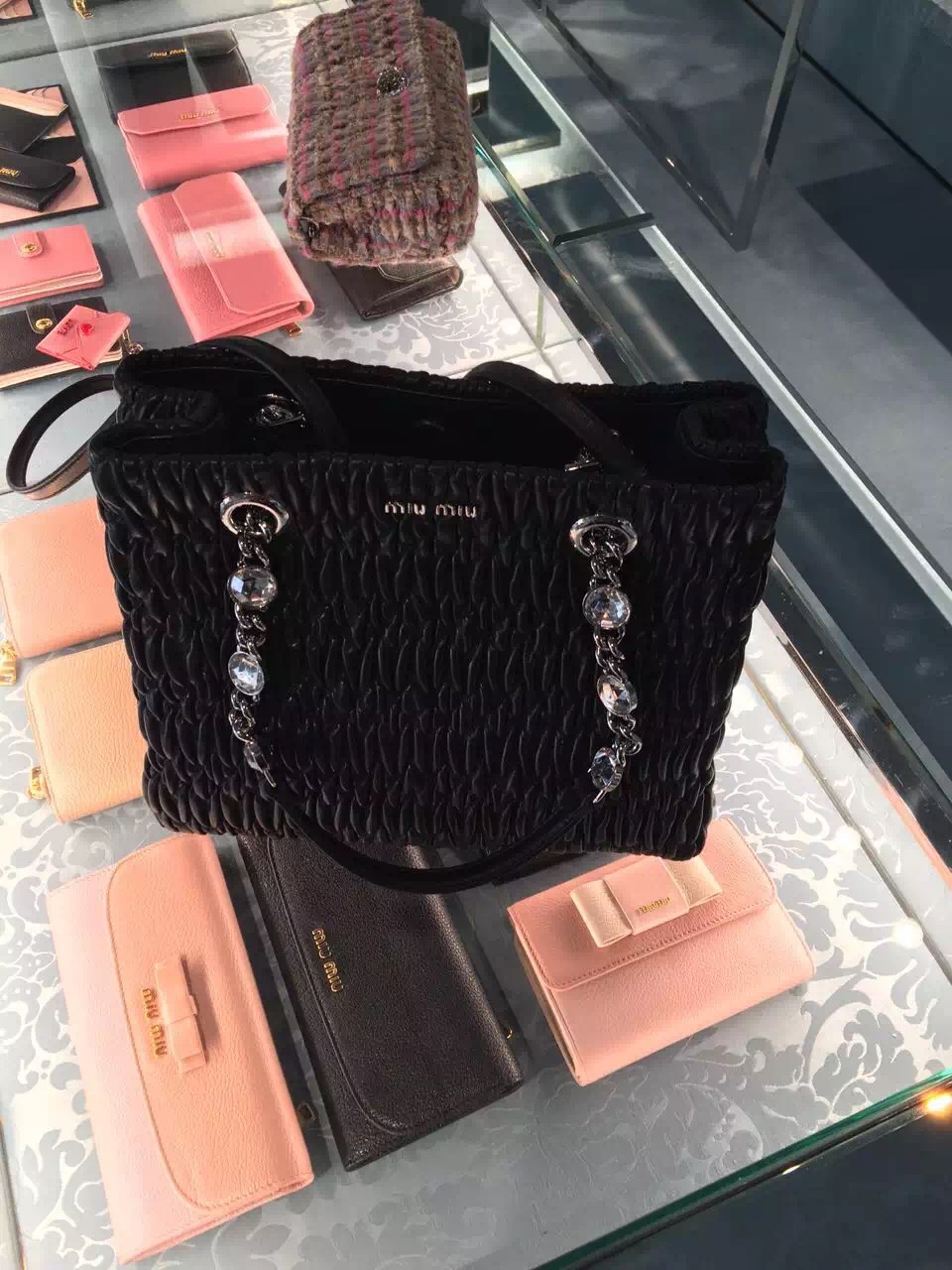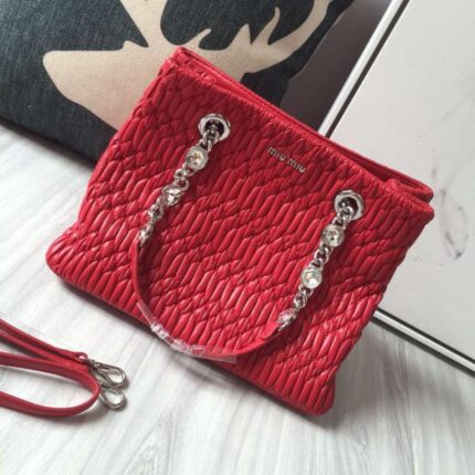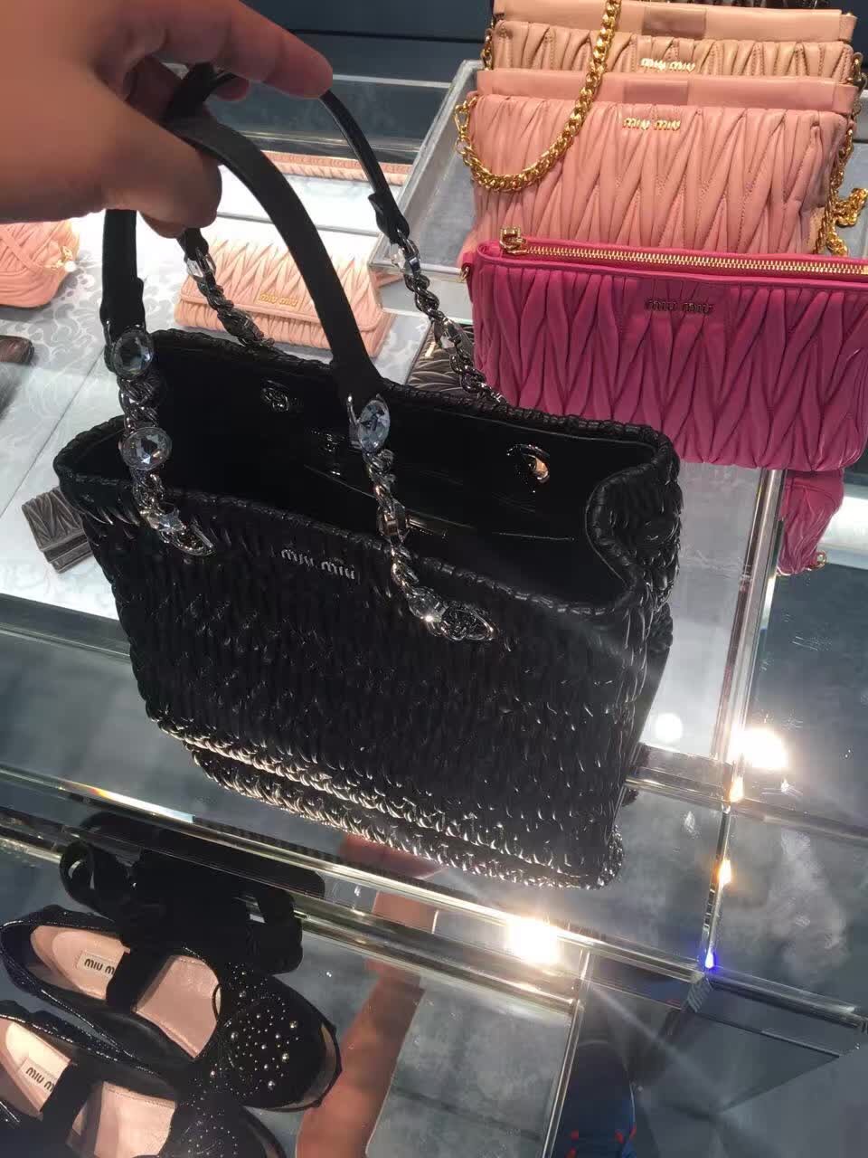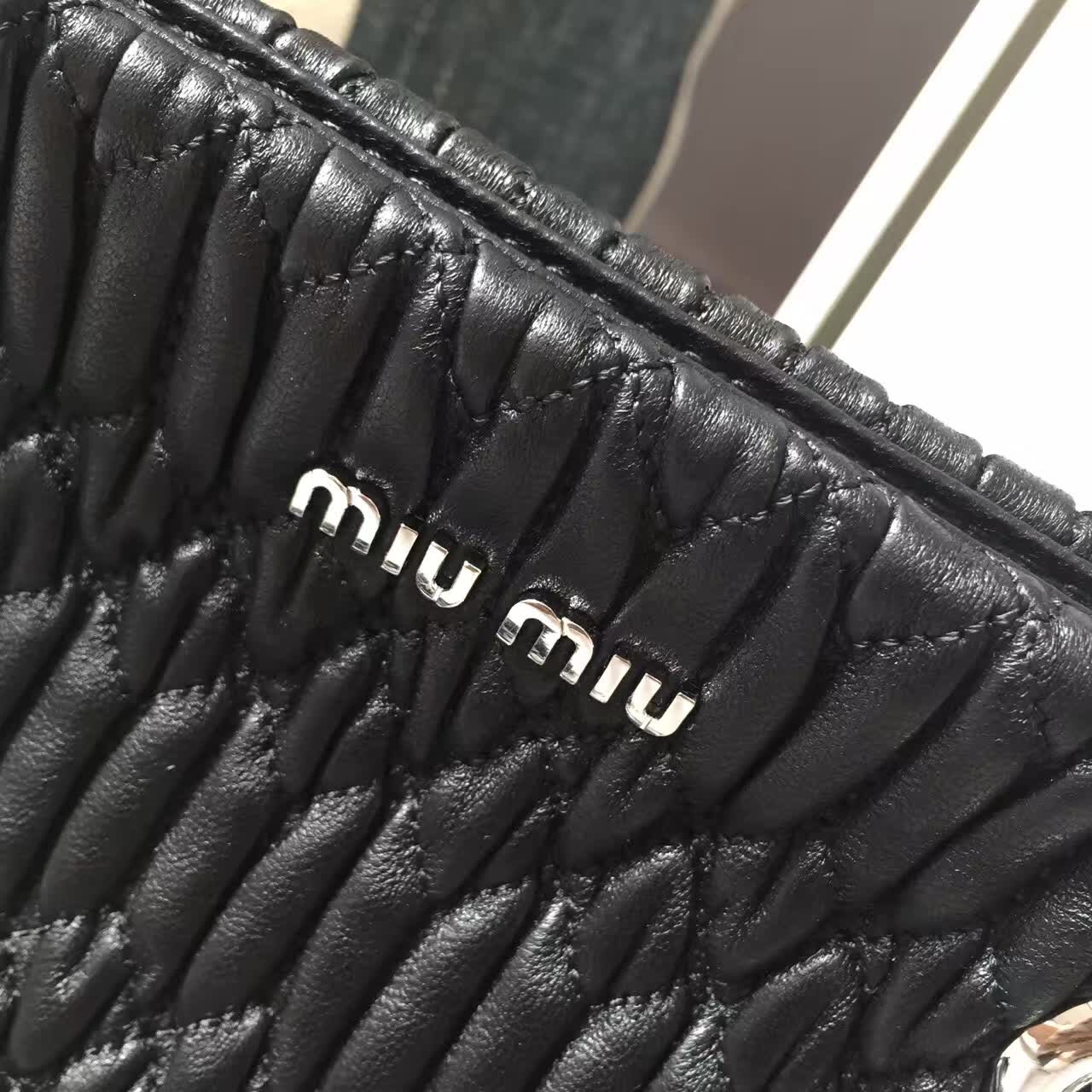 - Miumiu 官网经典款包包 2017年新款钻石链皱褶羊皮手提包