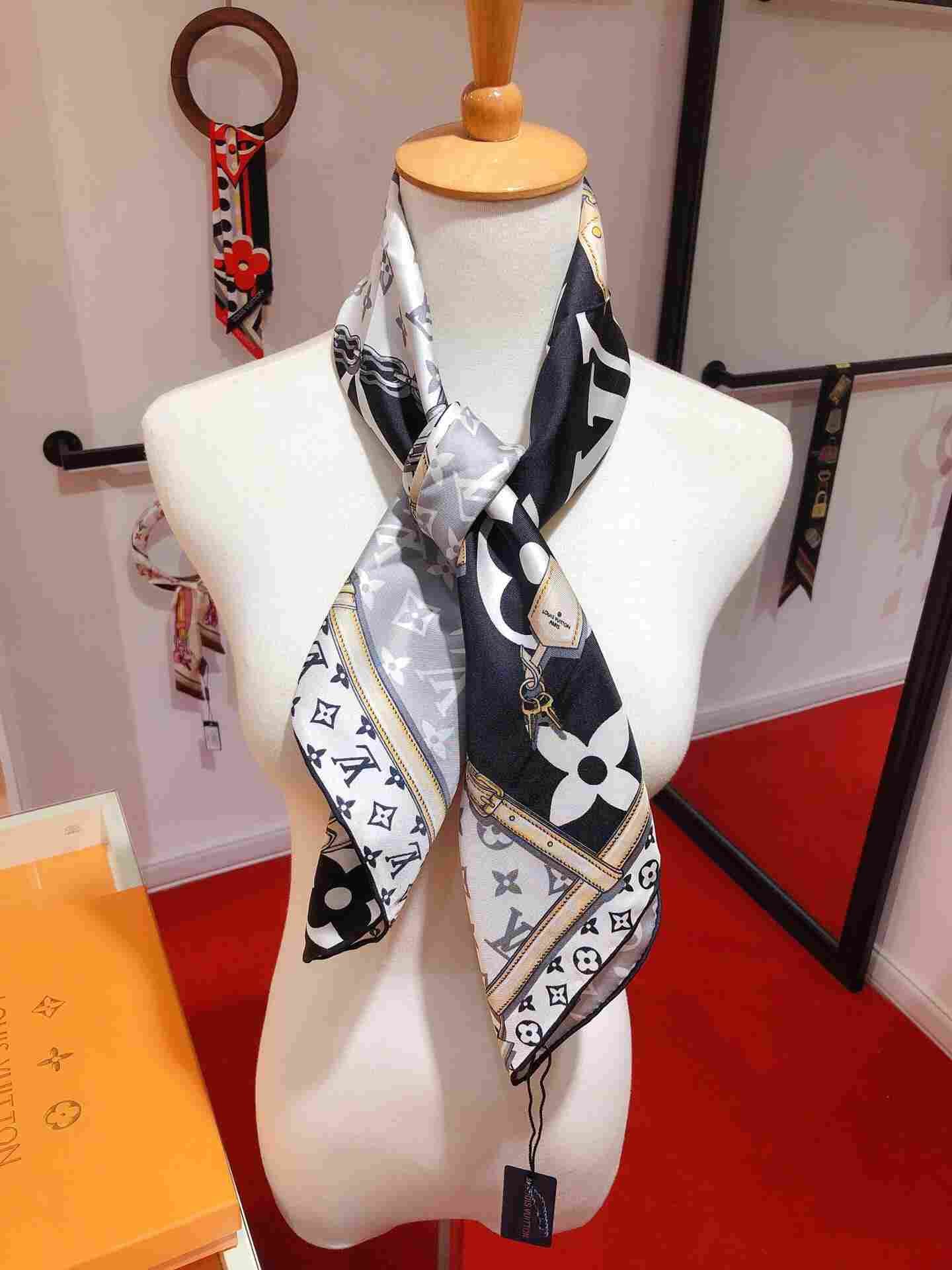 Monogram Confidential Square 90 颂扬 Houses Goods 传统。其时尚的路易威登标志性细节组合,包括表带、链条和挂锁图案,以经典的 Monogram 图案为背景。这款图形斜纹布单品是一款多功能礼物,可以以多种方式佩戴。