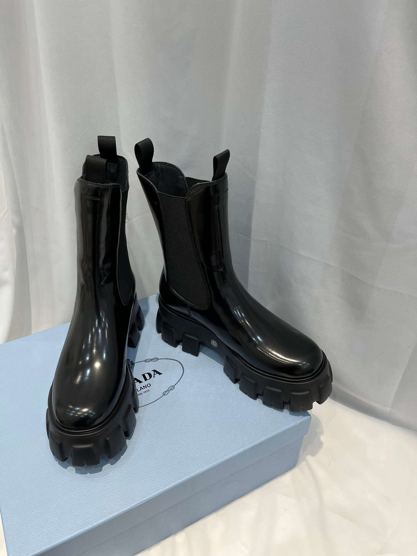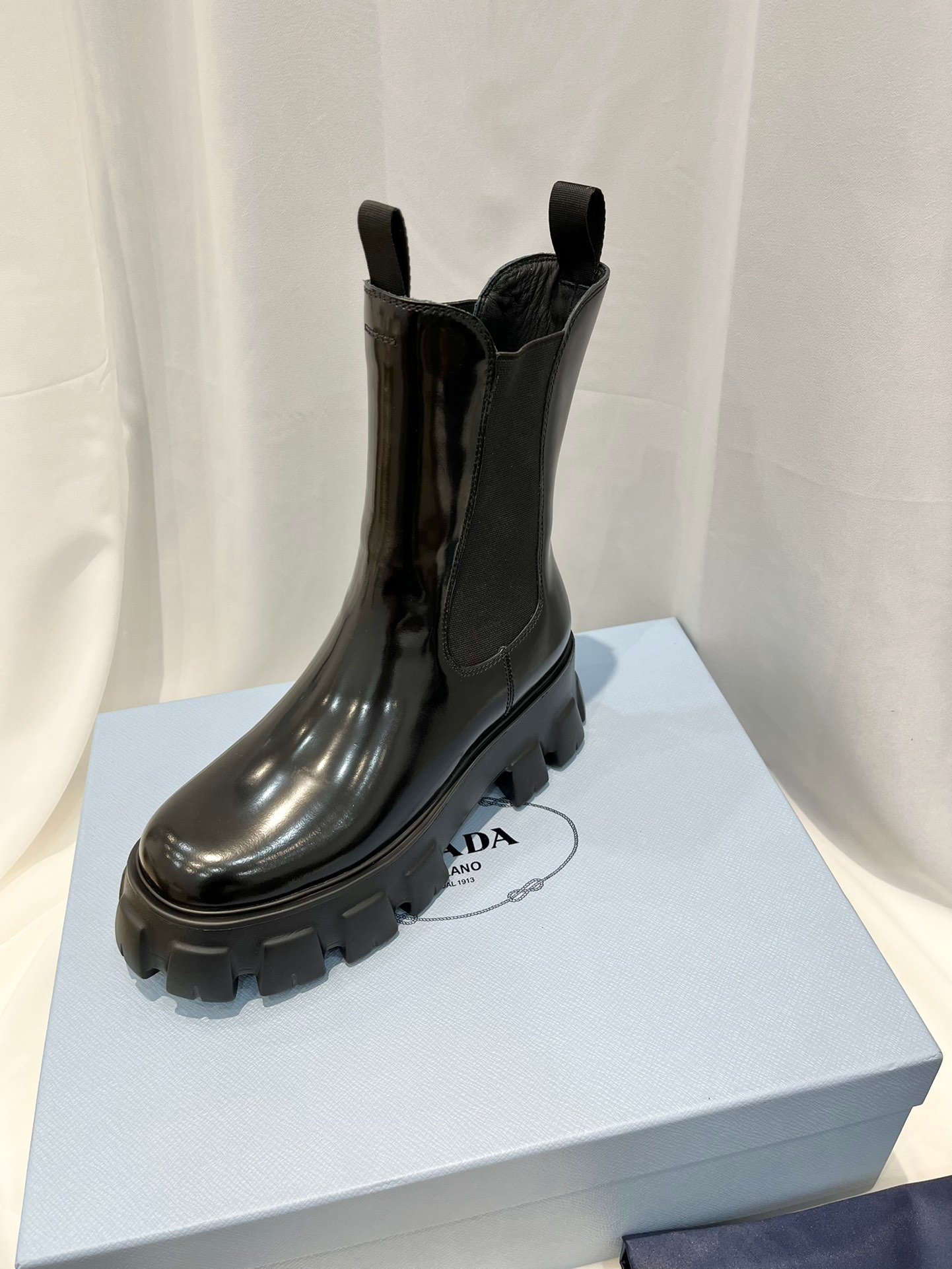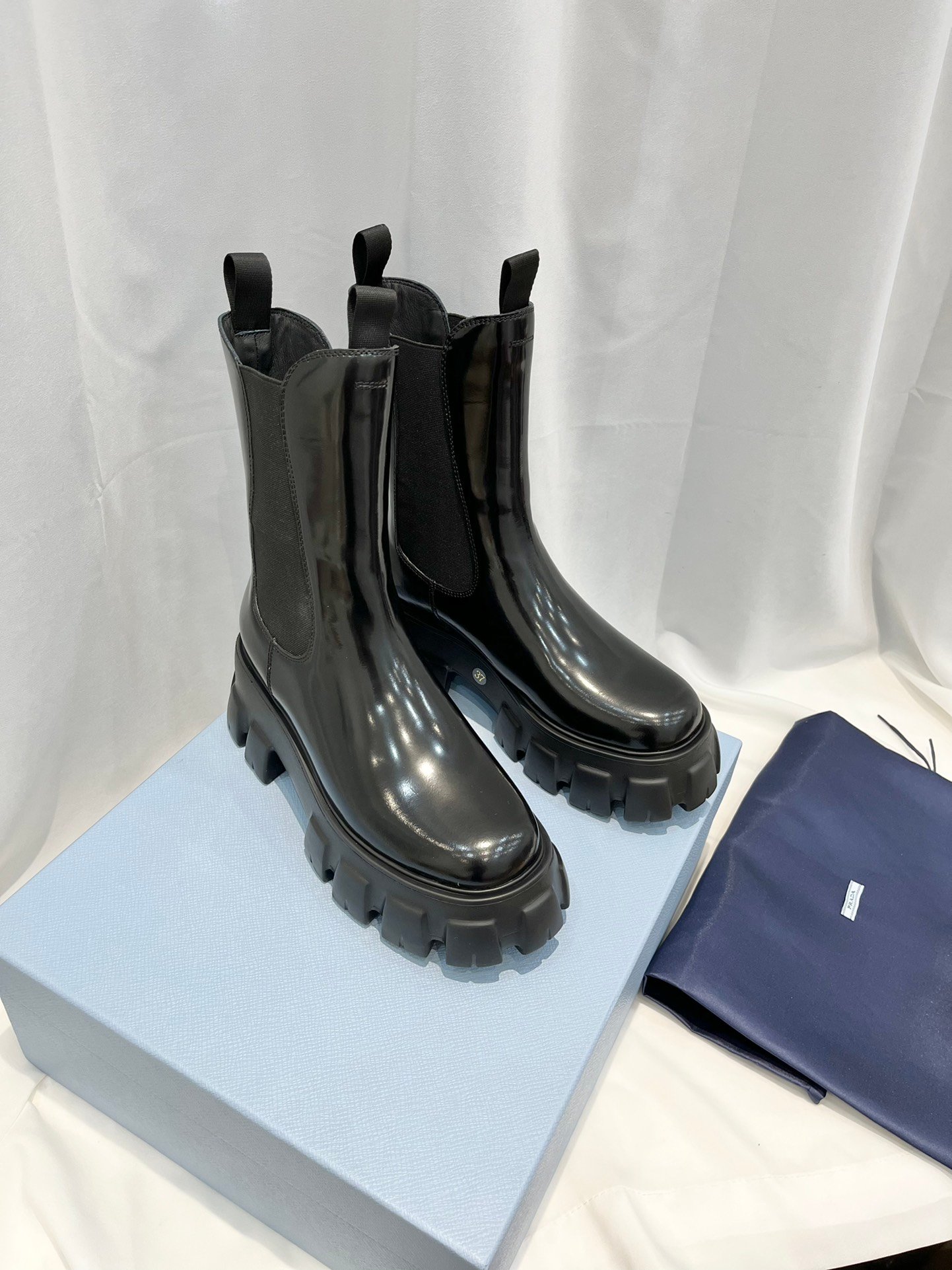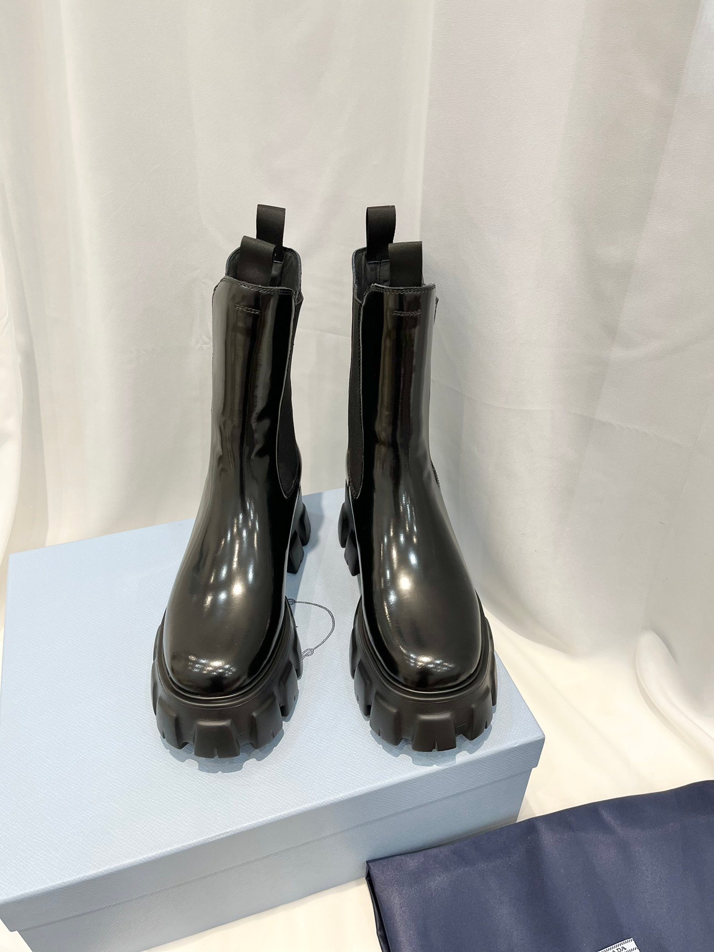 Prada Monolith 拉丝靴子黑色