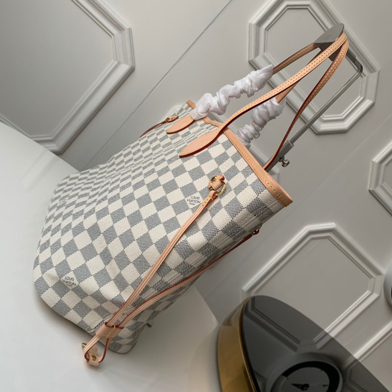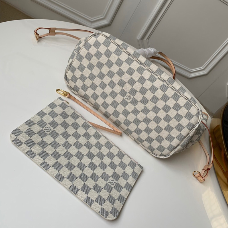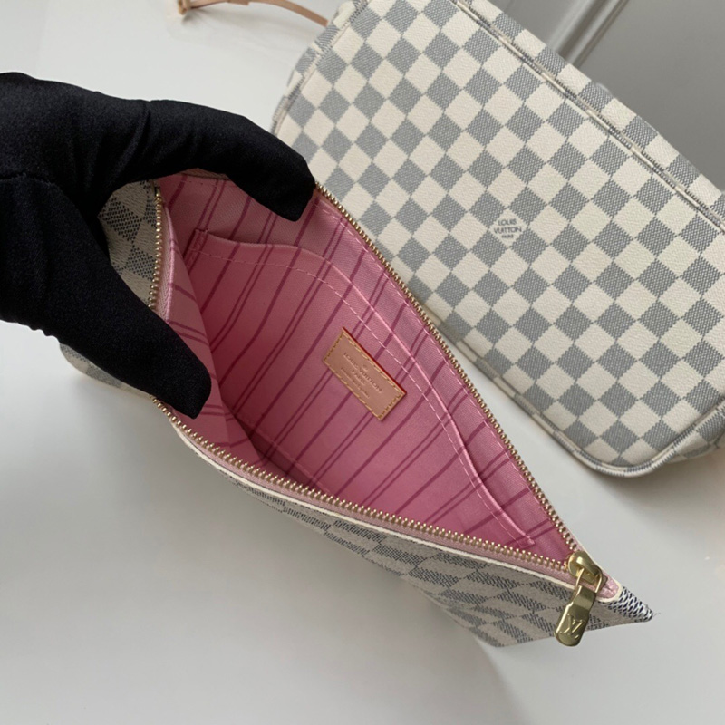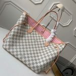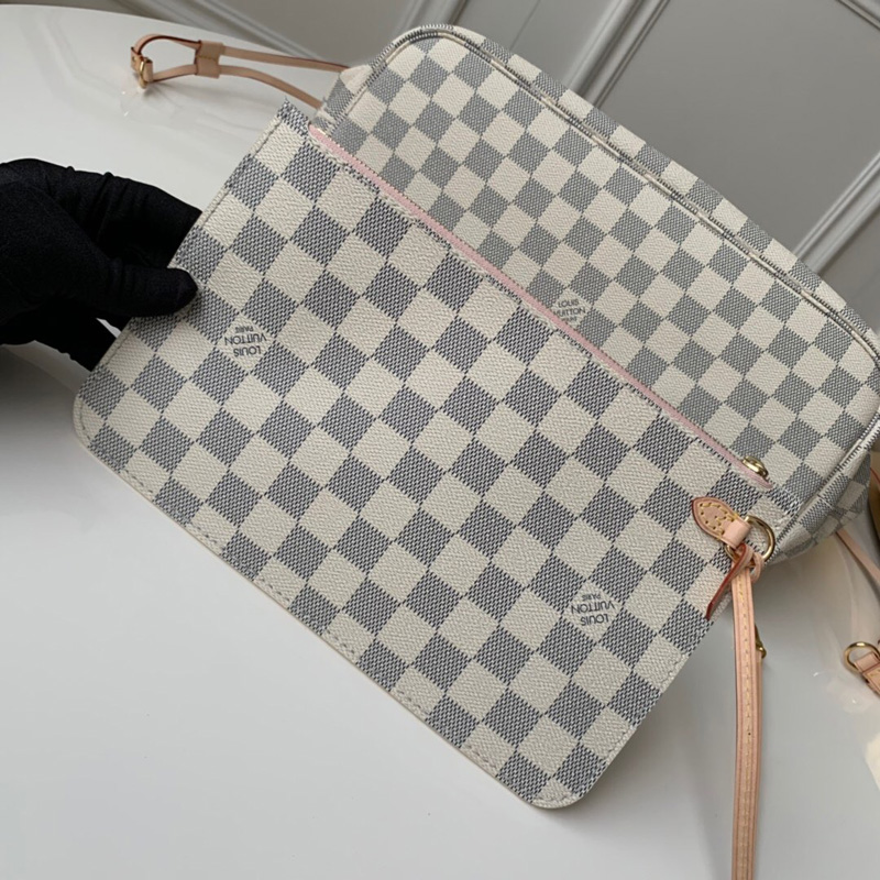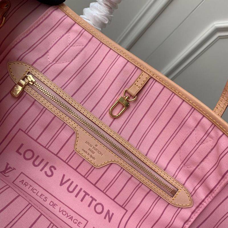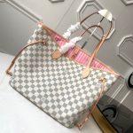 - N41605 LV Neverfull 中号手袋 LV白格女包 LV购物袋 LV子母包 粉色内里