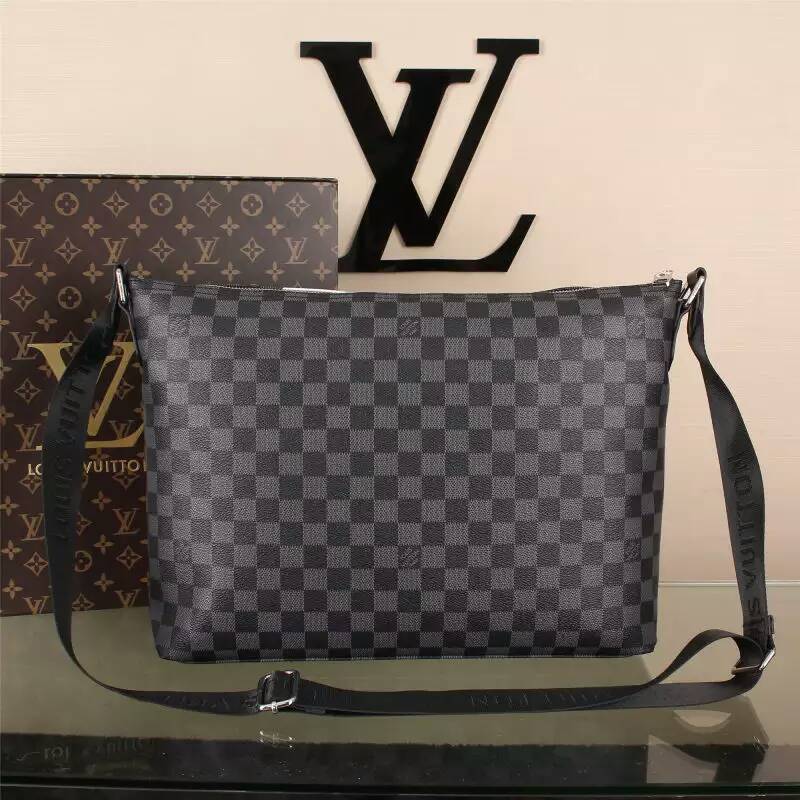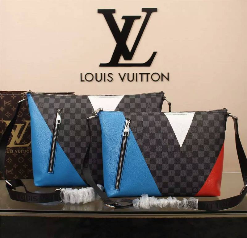 - 结构:- 外部采用Damier Cobalt格纹涂层帆布- 编织内衬- 天然牛皮饰边- 银色金属片- 拉链开合- 可调节、不可脱卸肩带- 拉链内袋- 3个扁平内袋- 外部拉链前袋