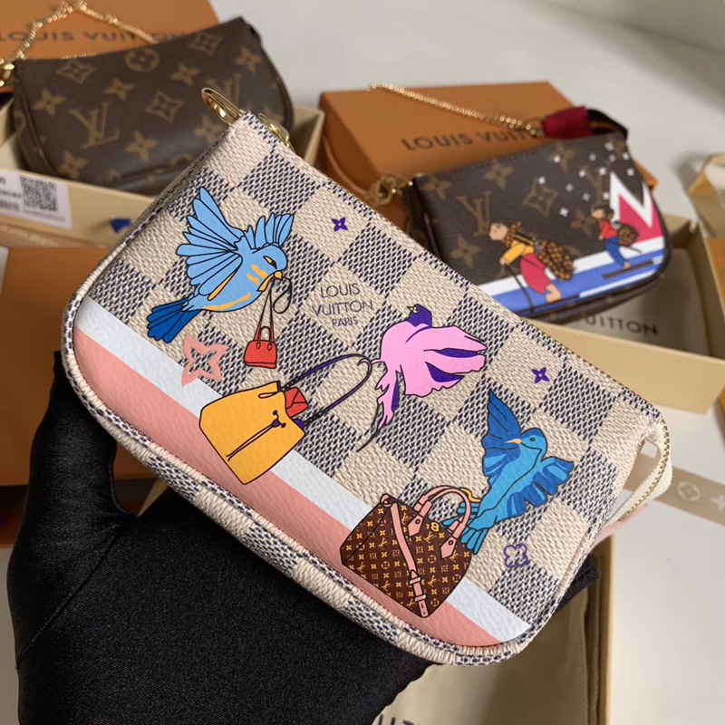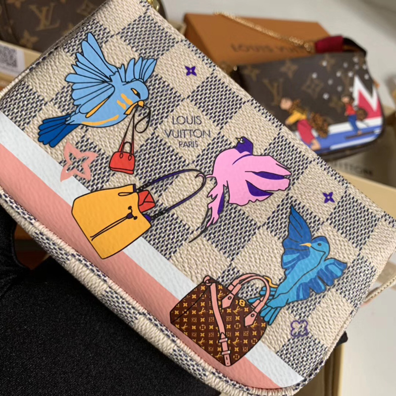 • N64451 LV Mini Pochette Accessoires 小手袋 LV白格帆布小鸟图案女包