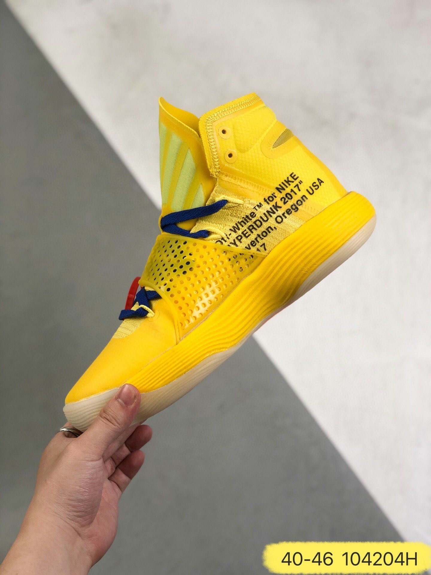 Nike Off-White React Hyperdunk 2017 Flyknit 黄色男式运动鞋,男鞋 AJ4578-700
