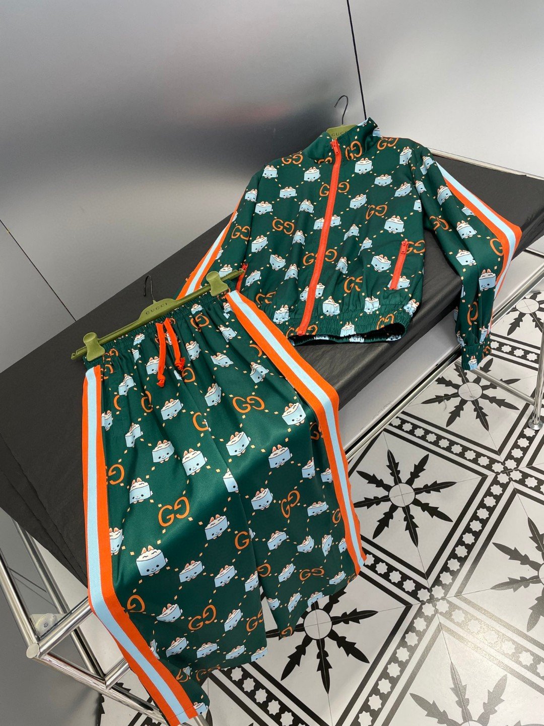Gucci Orange Border Jacket And Pants Green