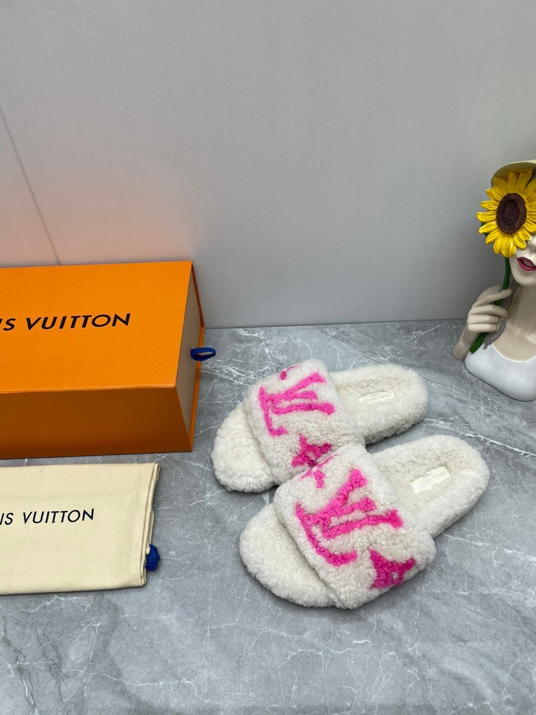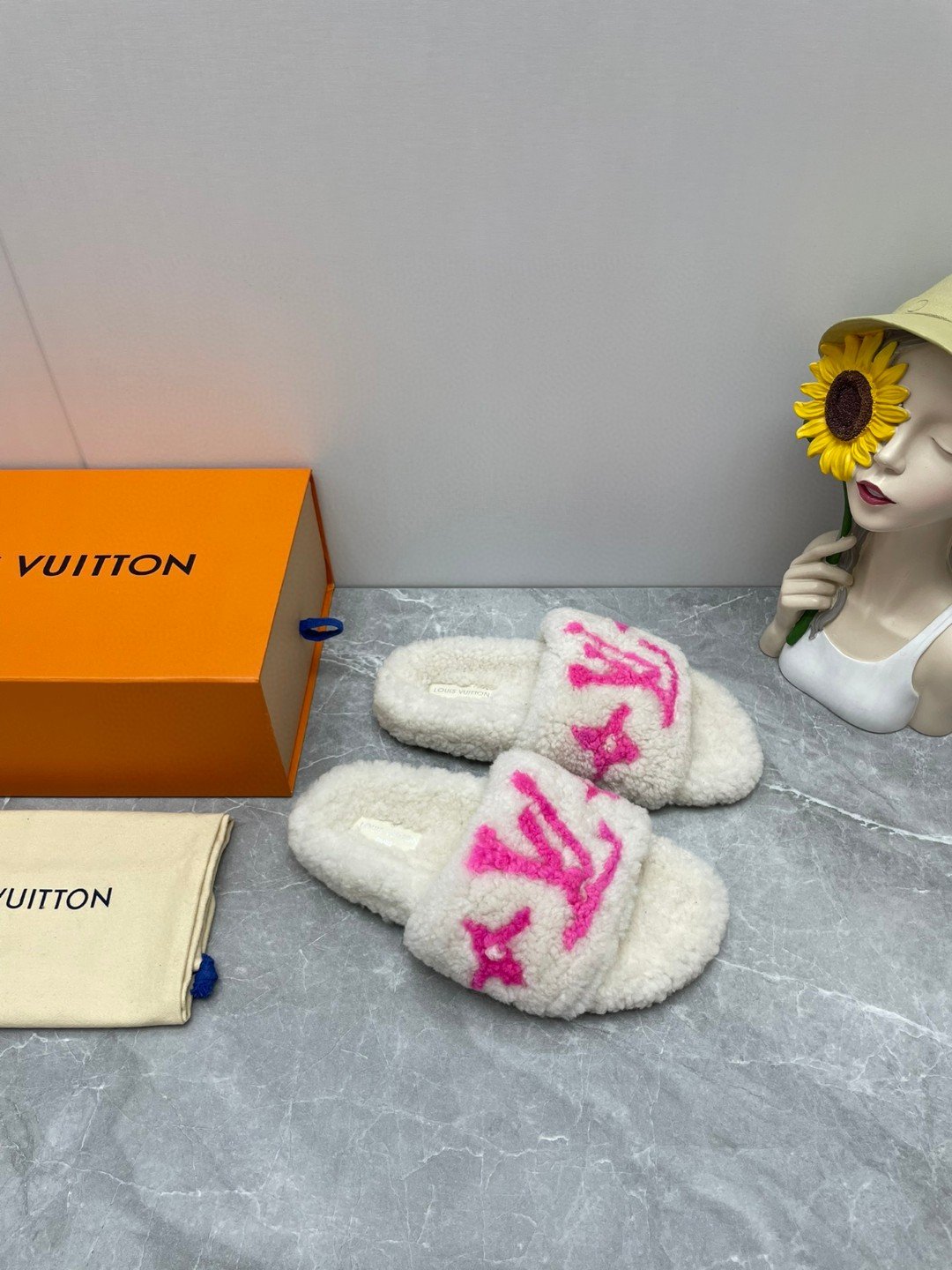 这款冬季版本的 Paseo 平底舒适穆勒鞋采用舒适羊毛皮制成的宽前带,带有形成 LV 首字母和 Monogram 花朵的撞色嵌片。羊毛皮覆盖的鞋床提供最佳的温暖和柔软度,使该款式适合室内和室外穿着。它采用轻质纹理橡胶外底。