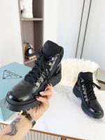 Prada 剪羊毛高帮运动鞋黑色女式 PRD
