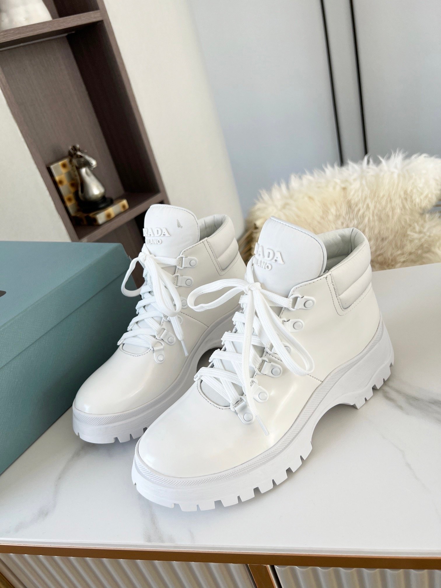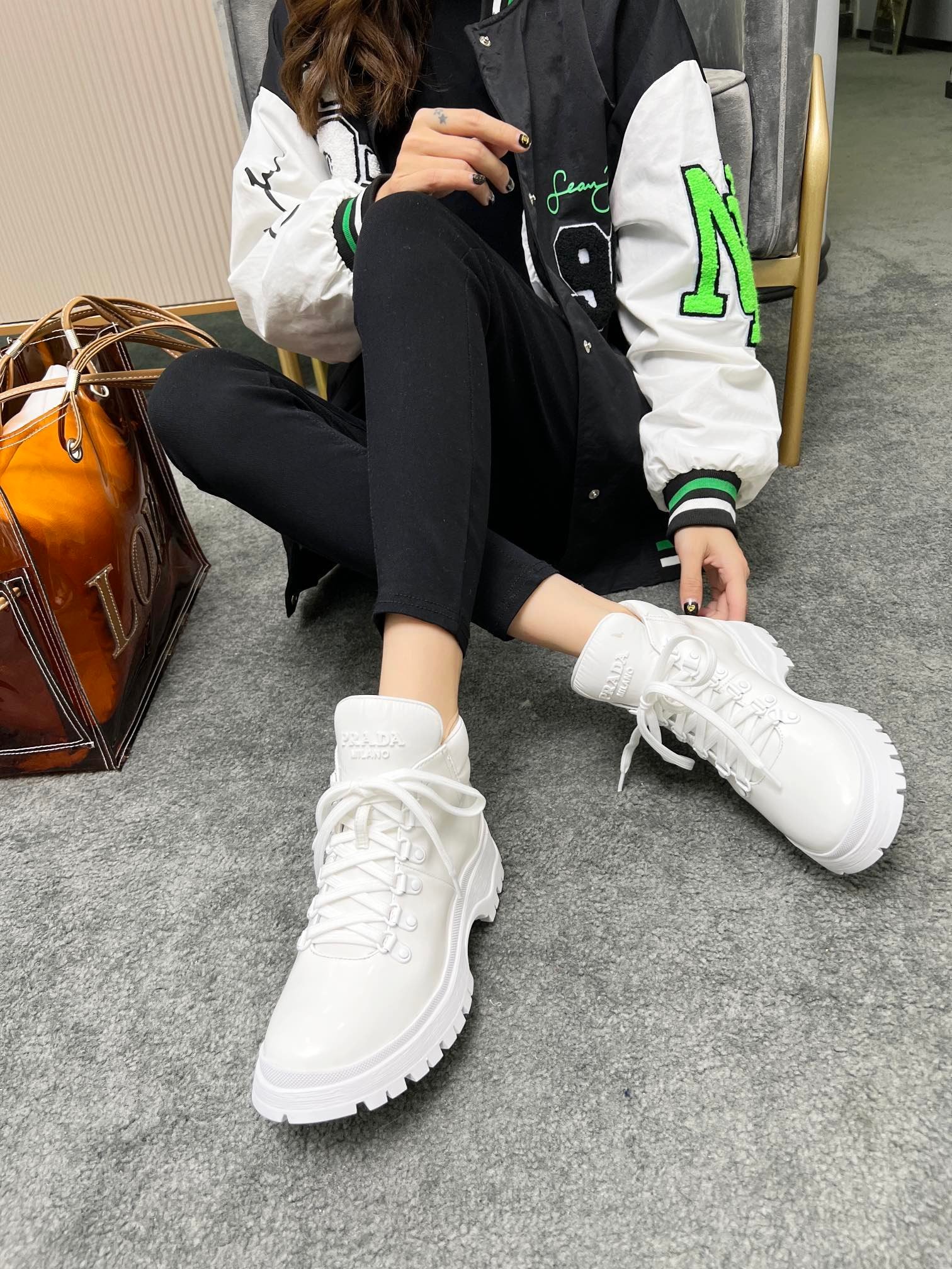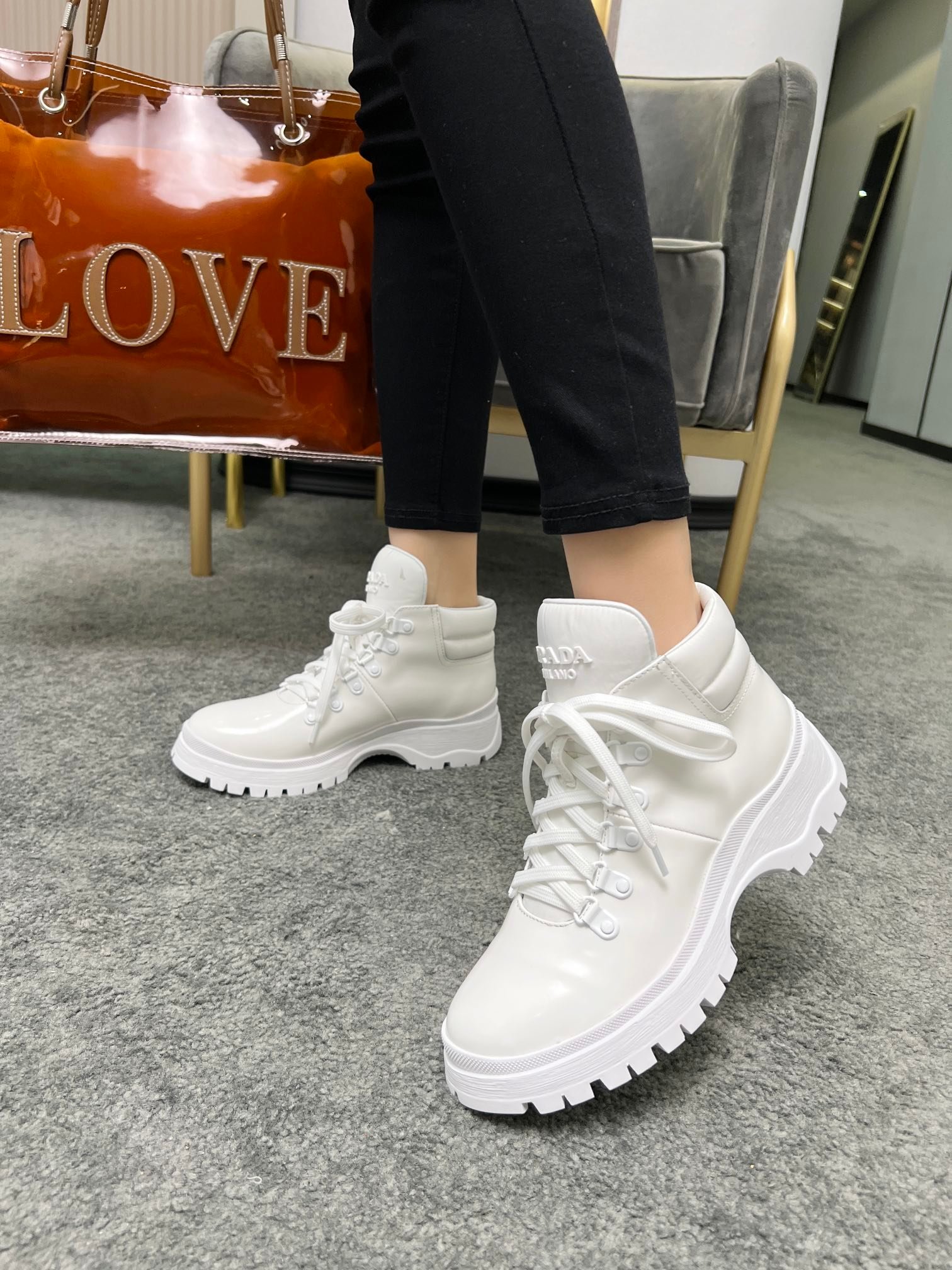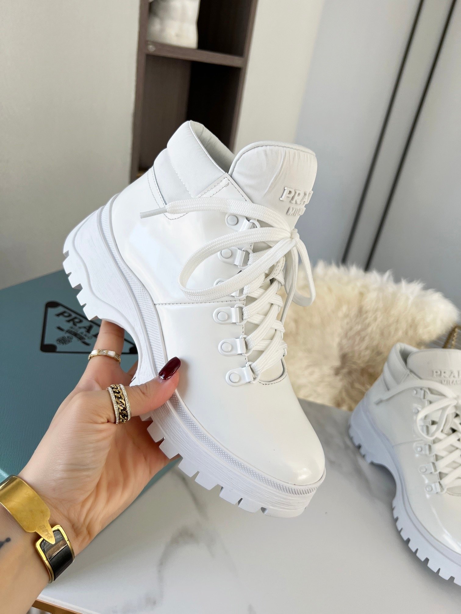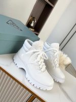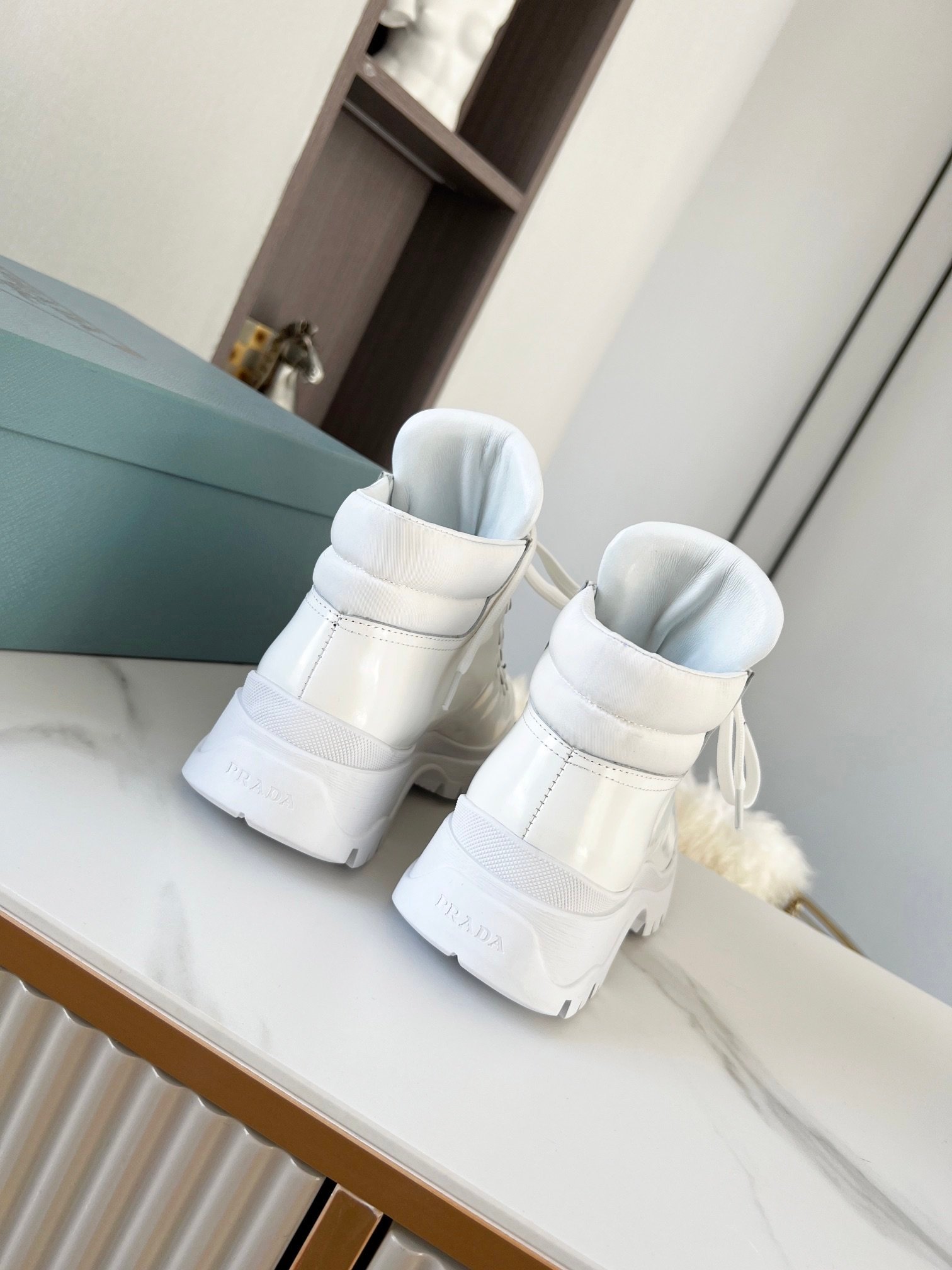 Prada 剪羊毛高帮运动鞋白色女式 PRD