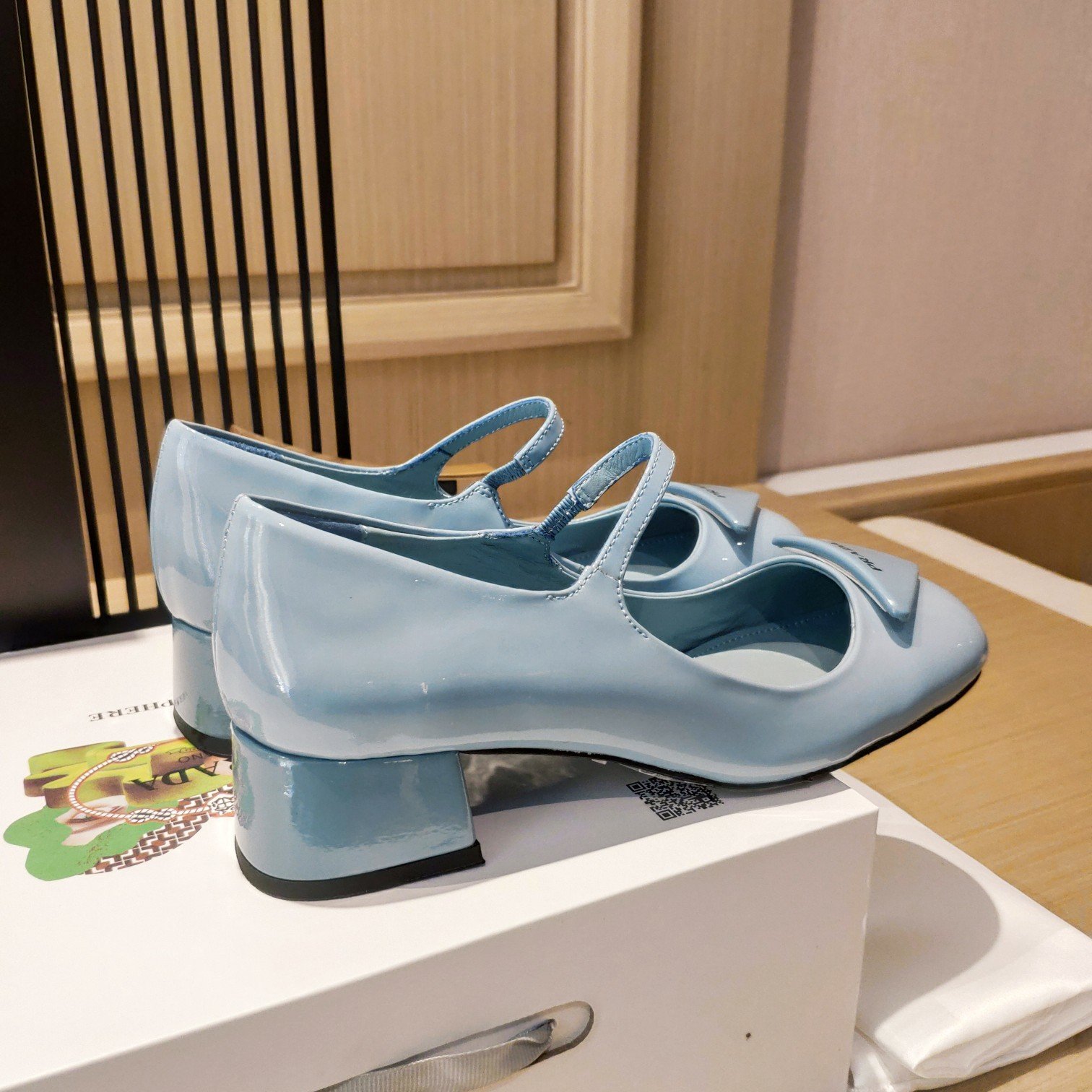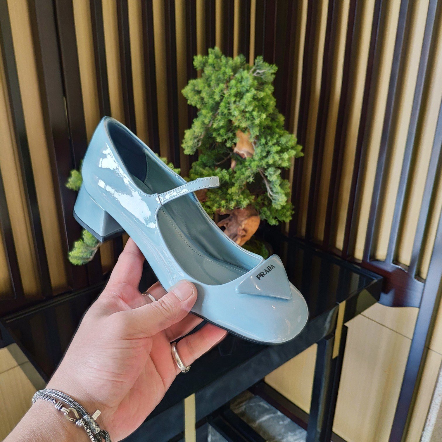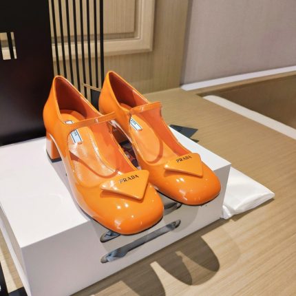 新款式将品牌标志性三角形转变为略带衬垫的细节,并饰有丝网印刷的 Prada 标志。几何元素装饰这些低跟漆皮高跟鞋的脚趾,精致的轮廓和优雅的魅力。
