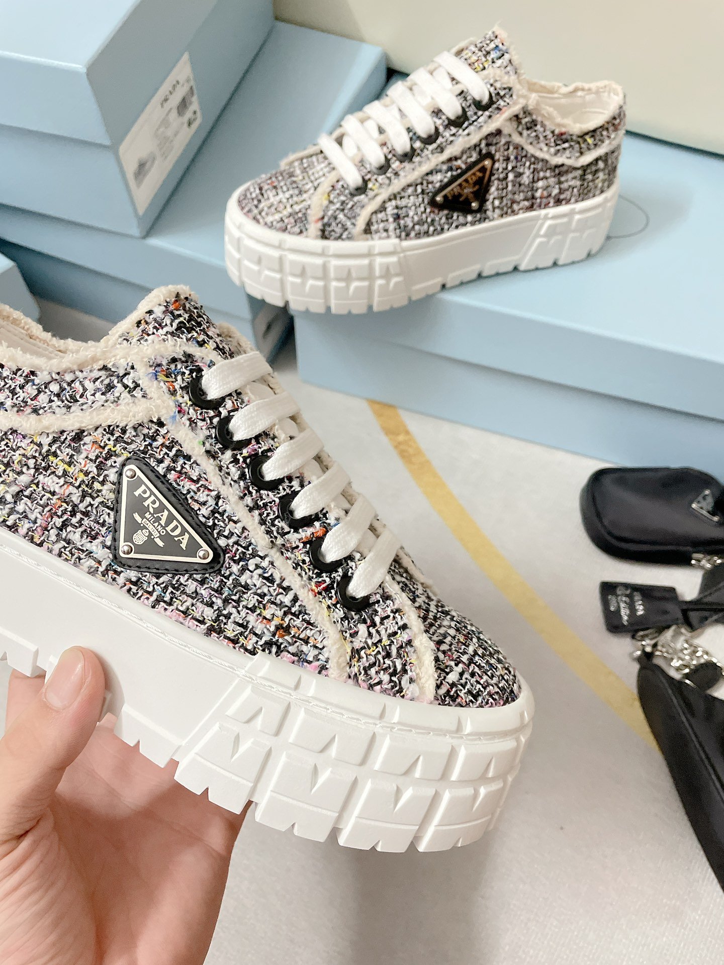 压花橡胶 Prada 三角形标志