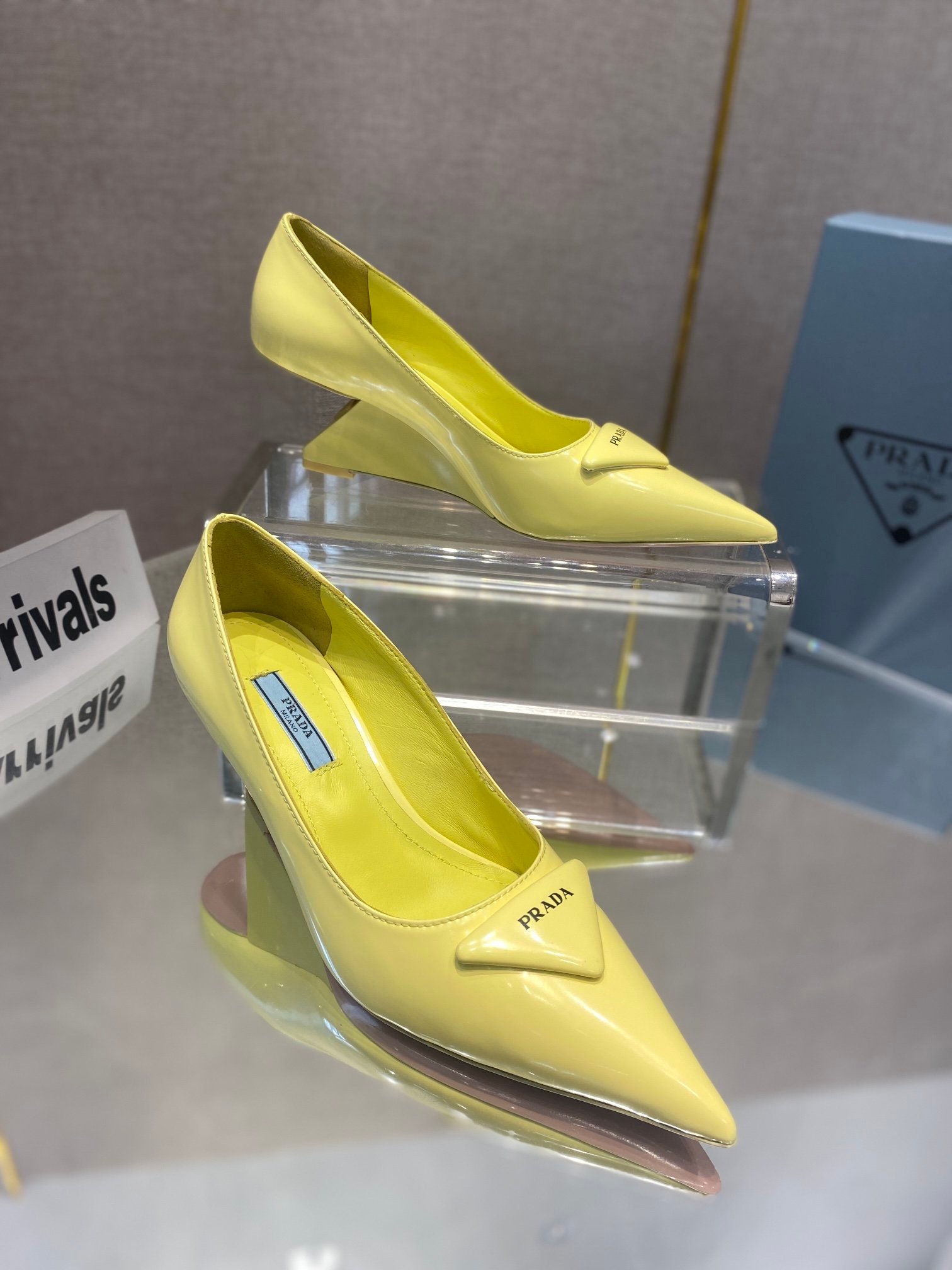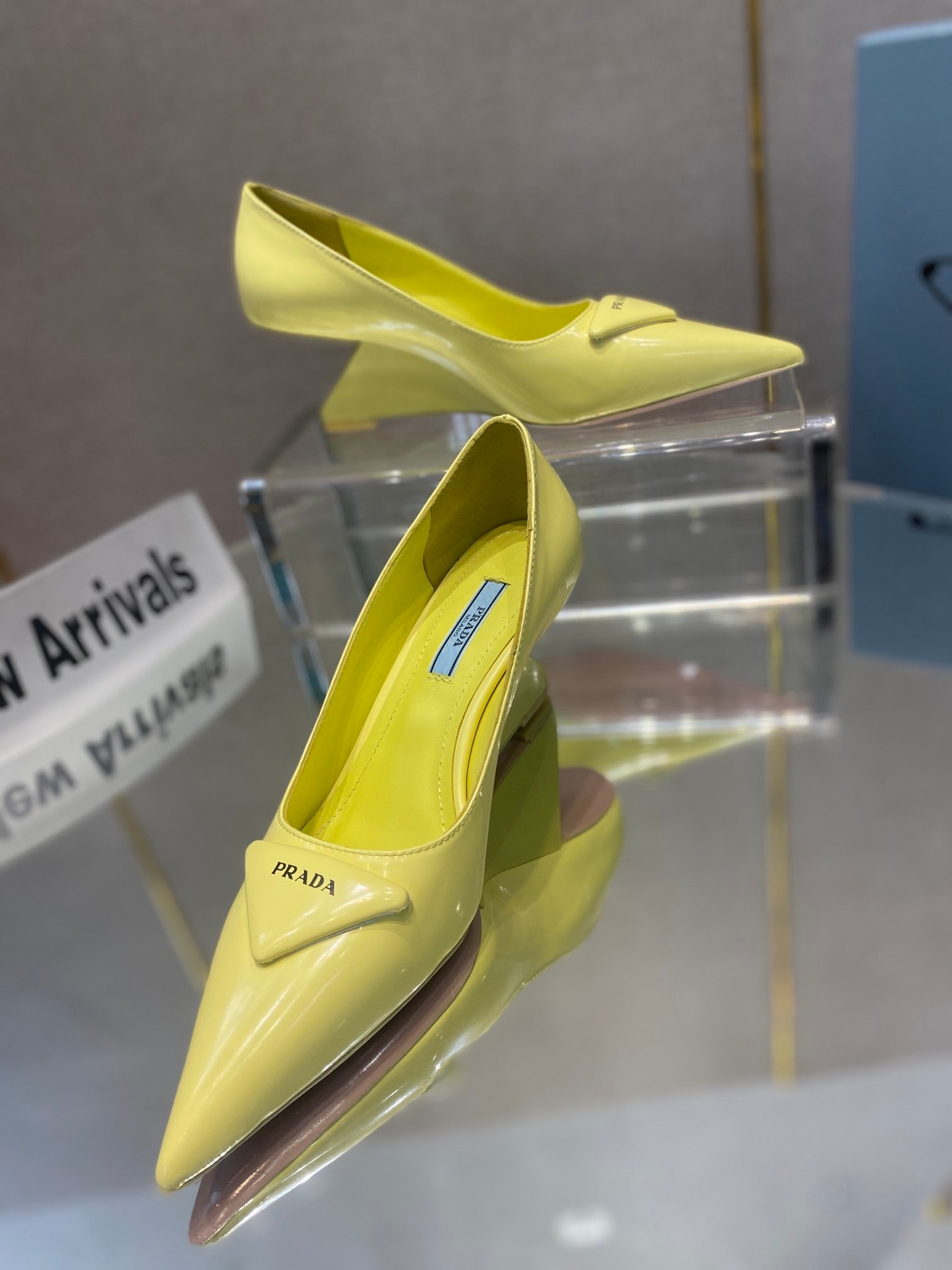 Prada 女式黄色拉丝高跟鞋 2.6 英寸/65 毫米 PRD