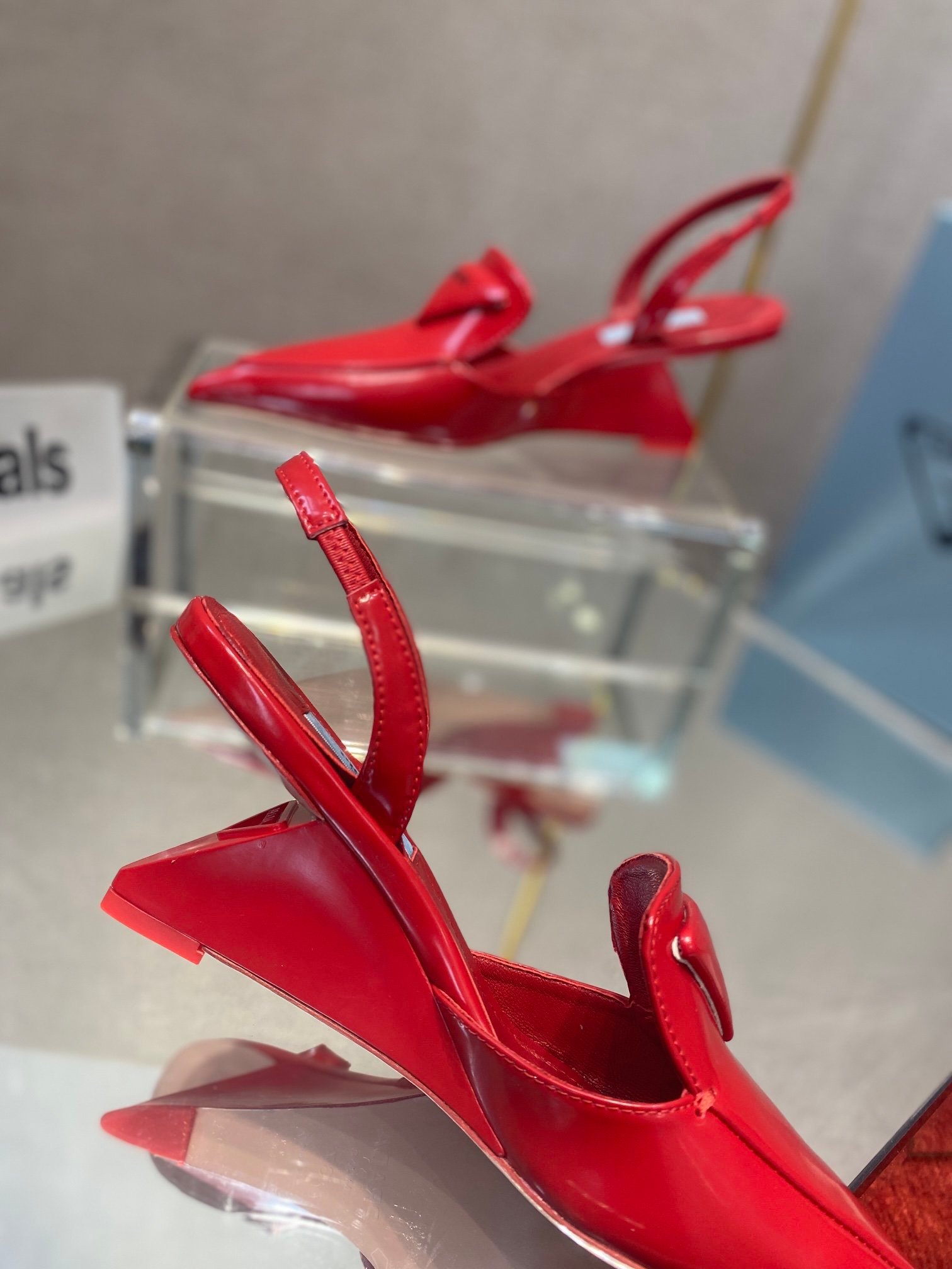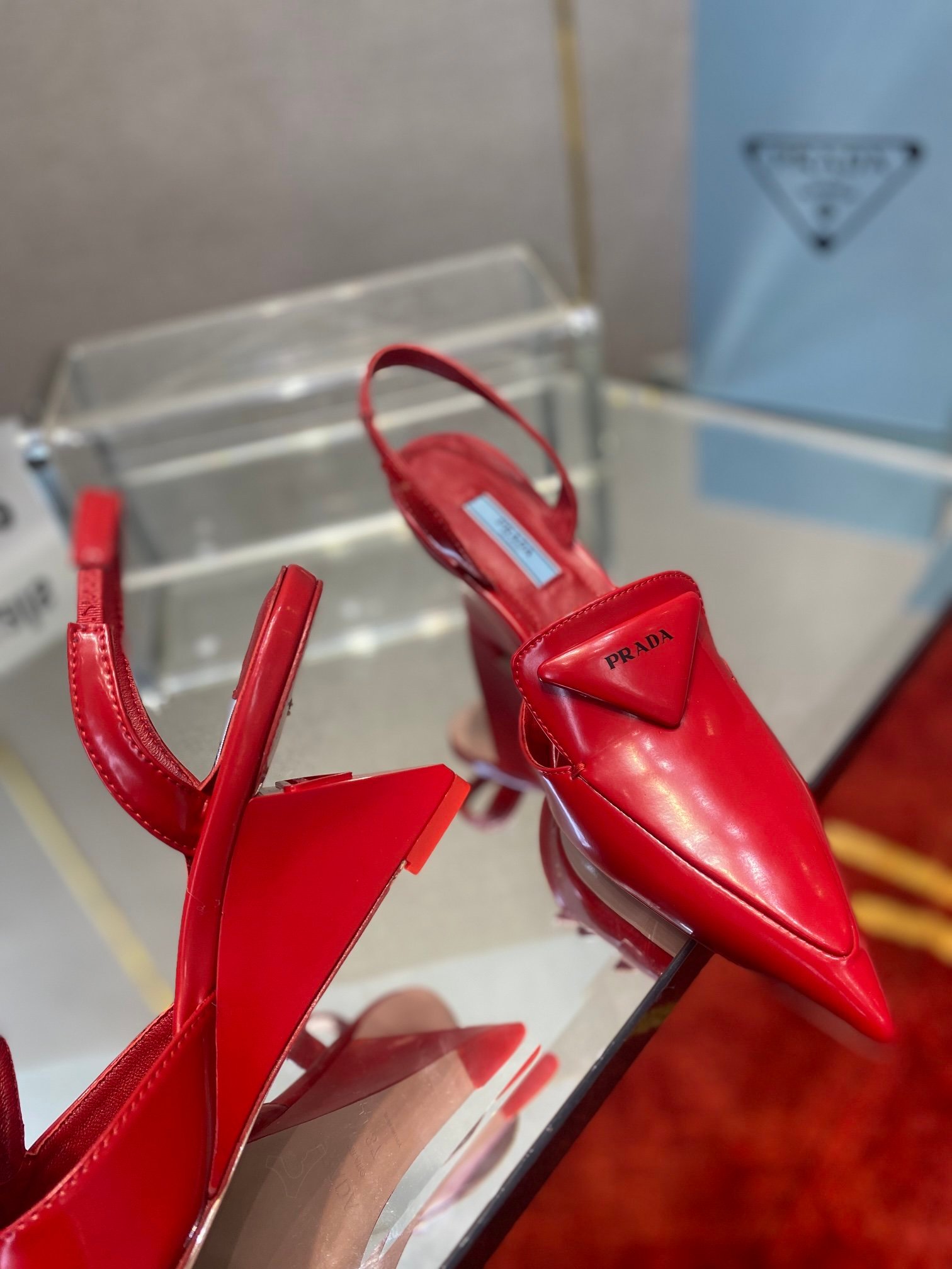 Prada 拉丝露跟鞋红色女式 2.6 英寸/65 毫米 PRD