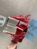 Prada 女式拉绒露跟高跟鞋 红色 2.6 英寸/65 毫米 PRD