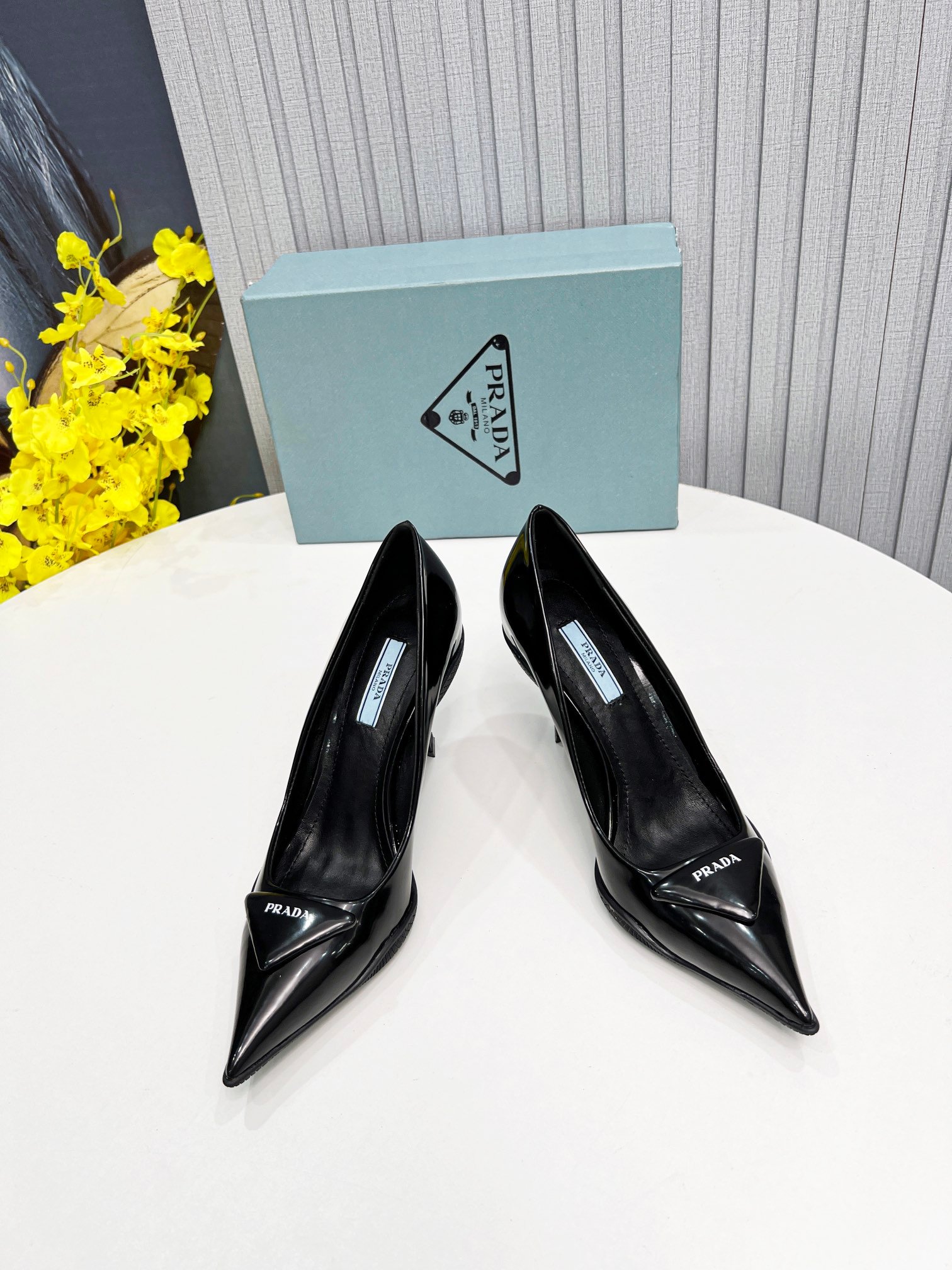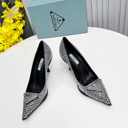 Prada 黑色女式拉丝露跟高跟鞋 PRD