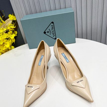 重新审视 90 年代 Prada 档案中的设计,橡胶外壳鞋底包裹着这些拉丝露跟高跟鞋的鞋面,打造出混合轮廓融合了女性化的尖头造型和运动风格。逗号鞋跟是 2021 年春夏系列的一个独特元素,灵感源自同一十年的风格。标志性三角形推出新款式,变成带有丝网印刷 Prada 徽标的轻微衬垫细节。