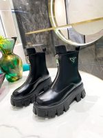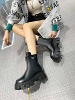这款黑色 Prada Monolith 靴子经过精心制作。单品采用圆头设计,高度至小腿中部,鞋面采用标志性 Re-Nylon 材质,两侧饰有三角形徽标牌,橡胶鞋底厚实。就像巨石阵一样,这些雕像般的 Prada 靴子非常令人惊叹。