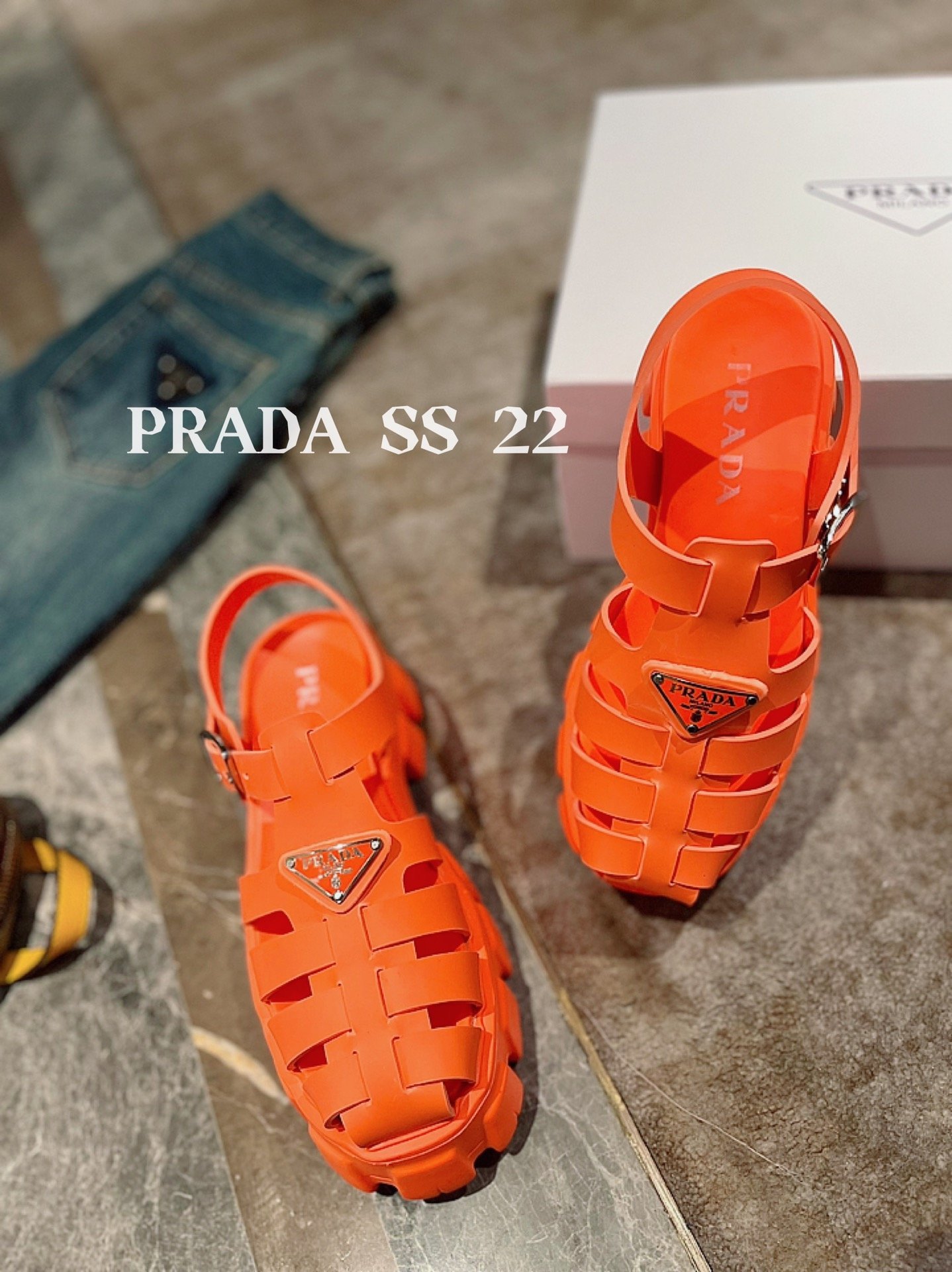 Prada 女式泡沫橡胶凉鞋 橙色 2.2 英寸/55 毫米 PRD