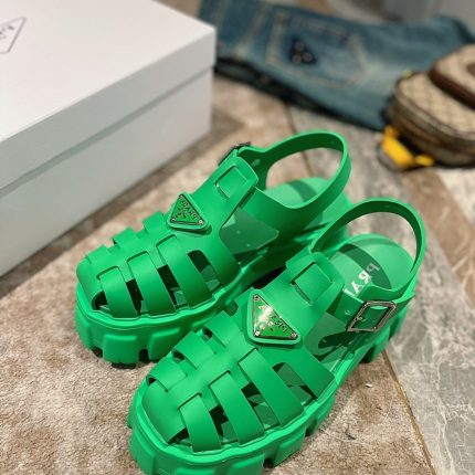 标志性的 Monolith 橡胶鞋底厚实而轻盈的设计体现了永恒的设计,整体而独特,以现代主义风格重新诠释 Prada 的双重灵魂。该鞋款采用橡胶制成,打造有趣、现代的外观,以全新方式重新诠释复古沙滩鞋,体现 Prada 的混合灵魂。