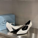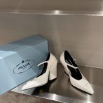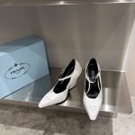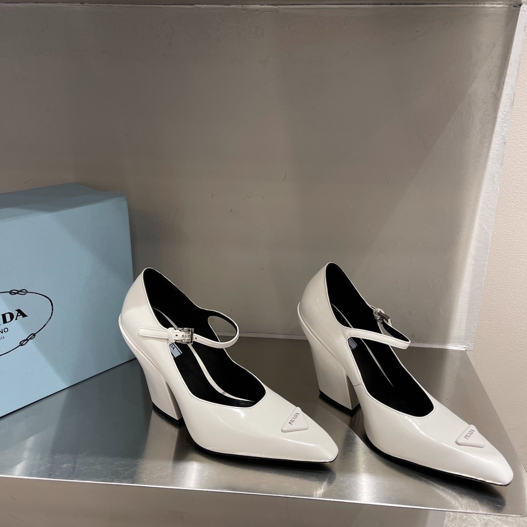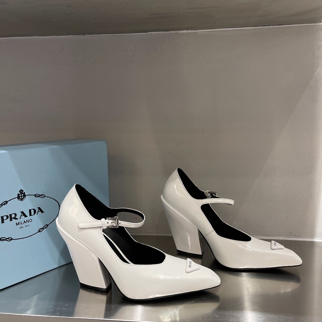Prada 女式拉丝高跟鞋白色 3.7 英寸/95 毫米 PRD