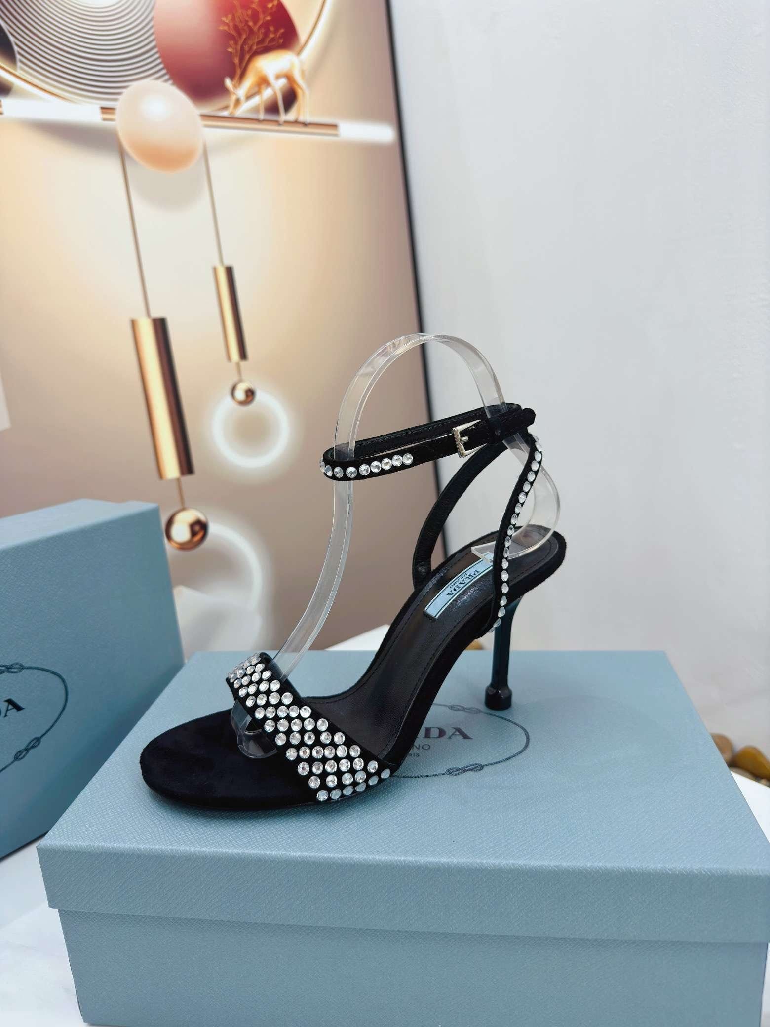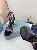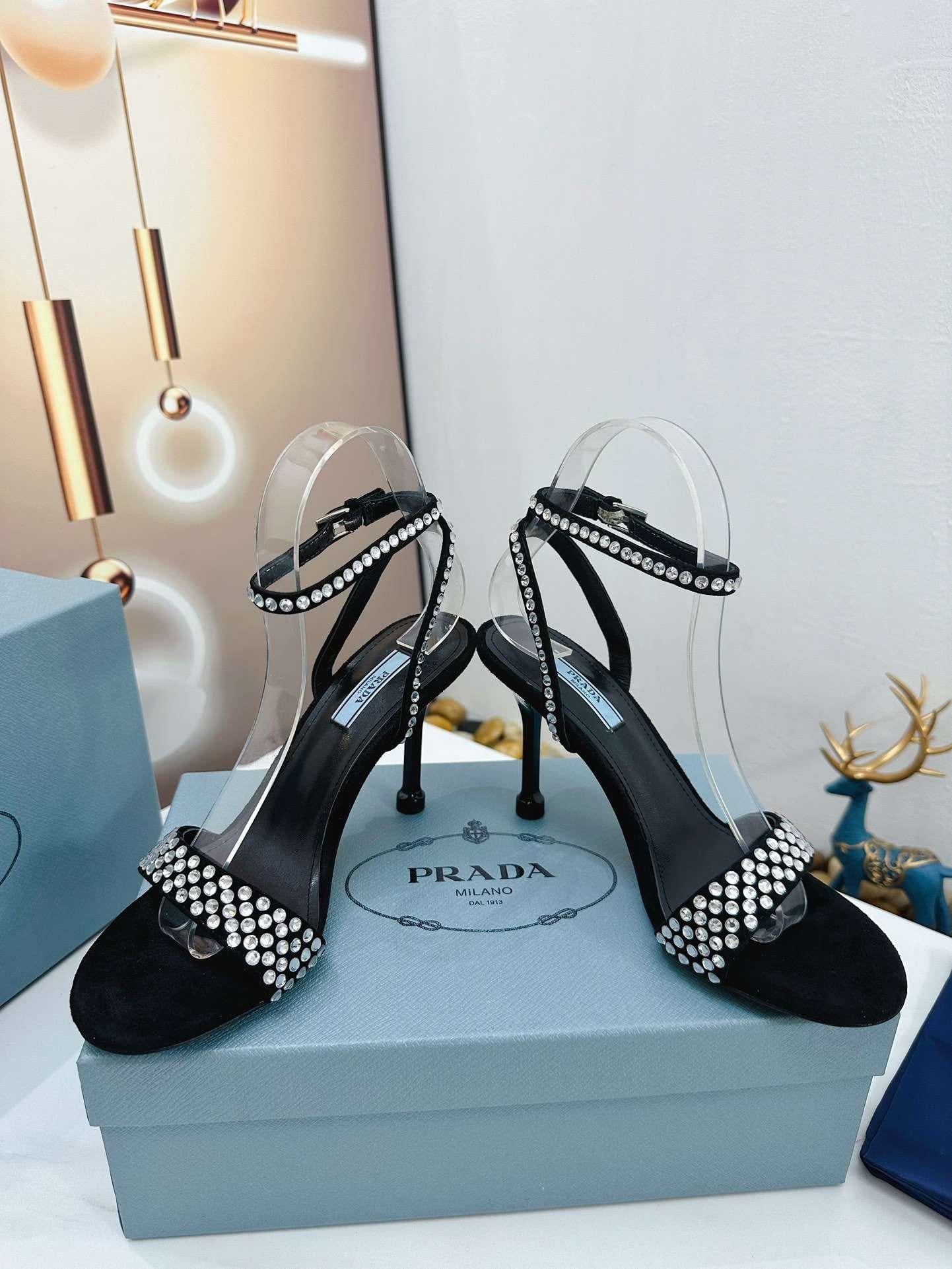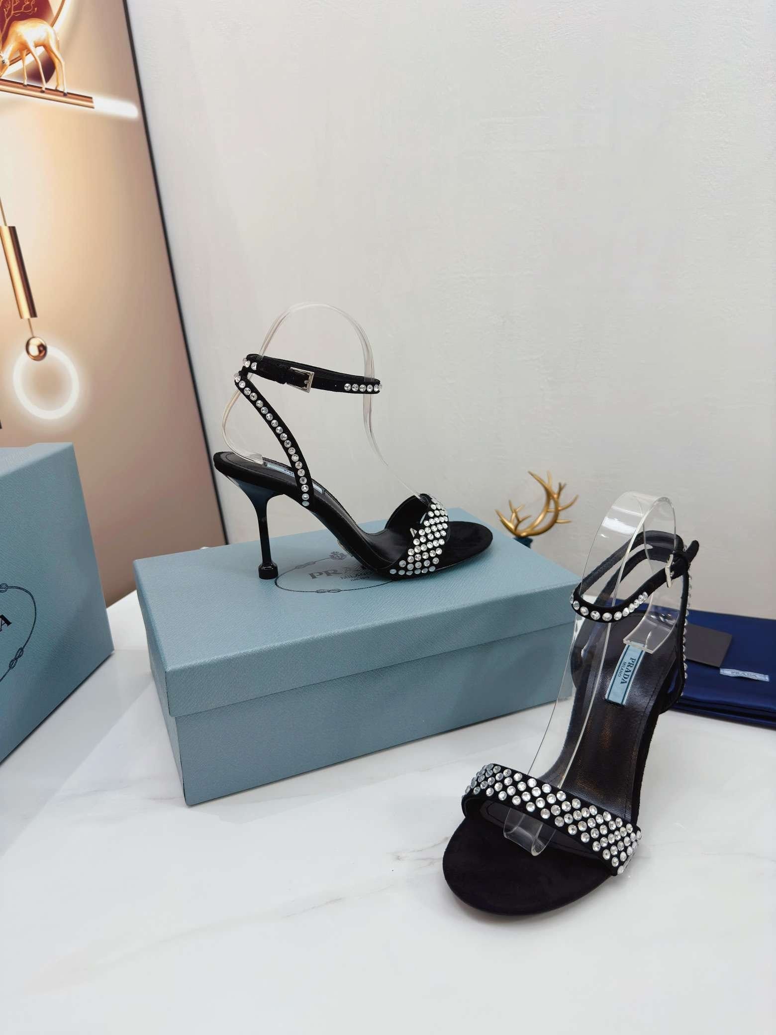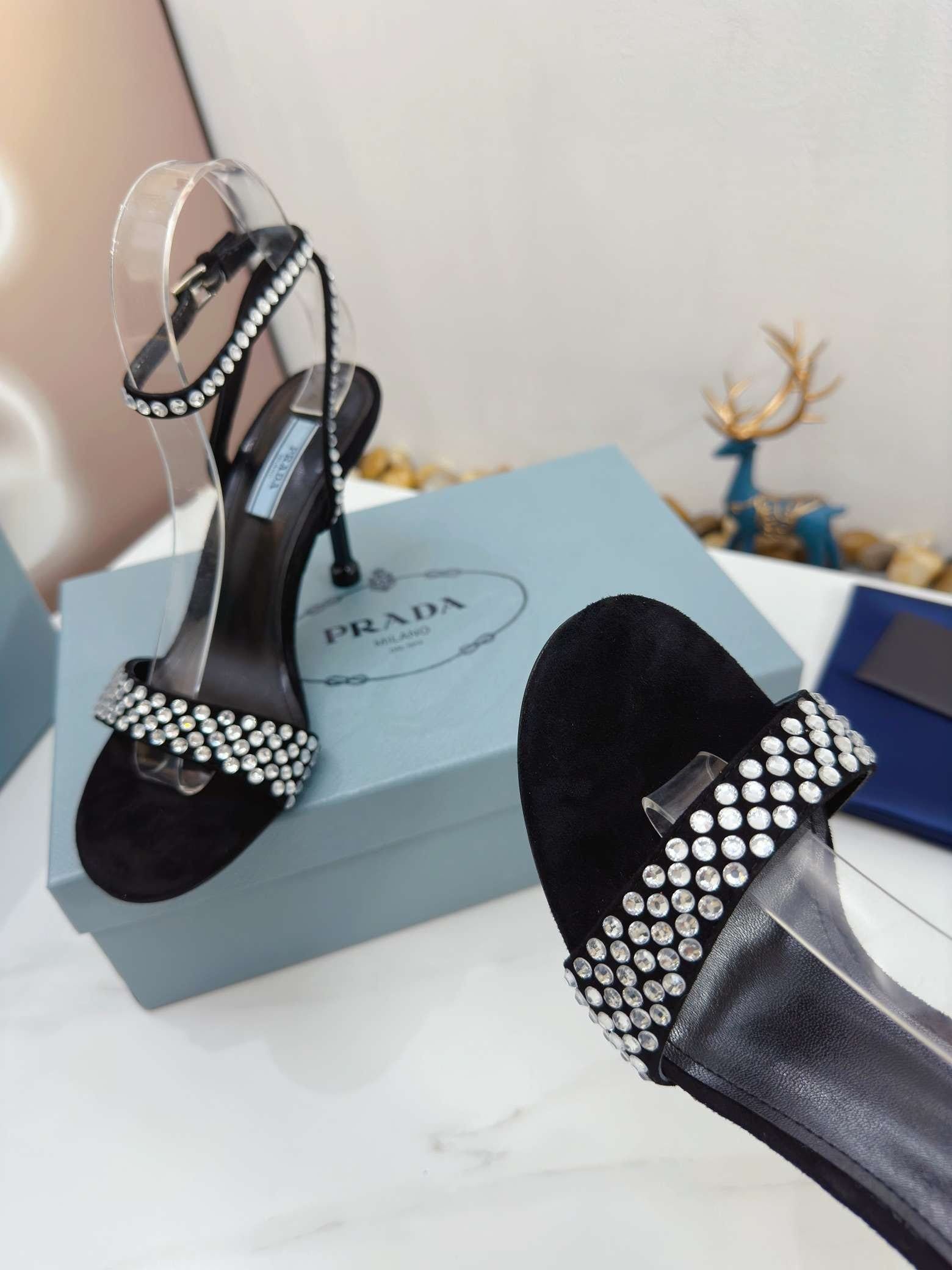 Prada 标志性的花朵形状为这些系带高跟鞋增添了诱人的美感。传统上用于高端经典鞋履,自 90 年代以来,拉绒在 Prada 系列中以现代设计进行了重新诠释,创造出反映品牌两侧的合成效果