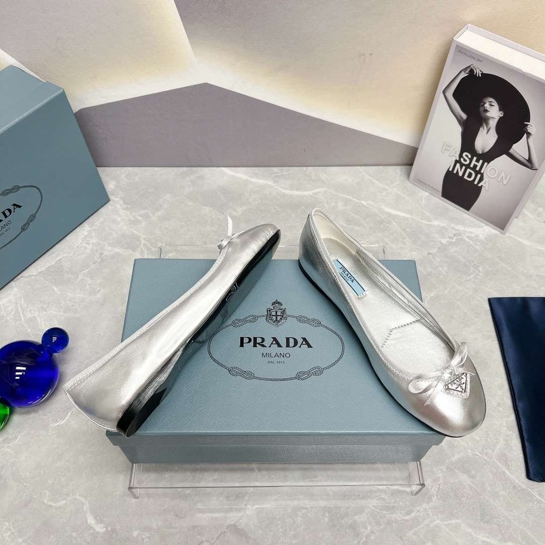Prada 女式纳帕皮芭蕾舞鞋银色
