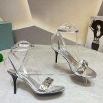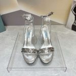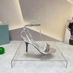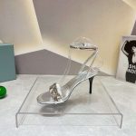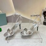 Prada 标志性的花朵形状为这些带高跟鞋增添了诱人的美感。传统上用于高端经典鞋履,自 90 年代以来,拉绒在 Prada 系列中以现代设计进行了重新诠释,创造出反映品牌两侧的合成效果