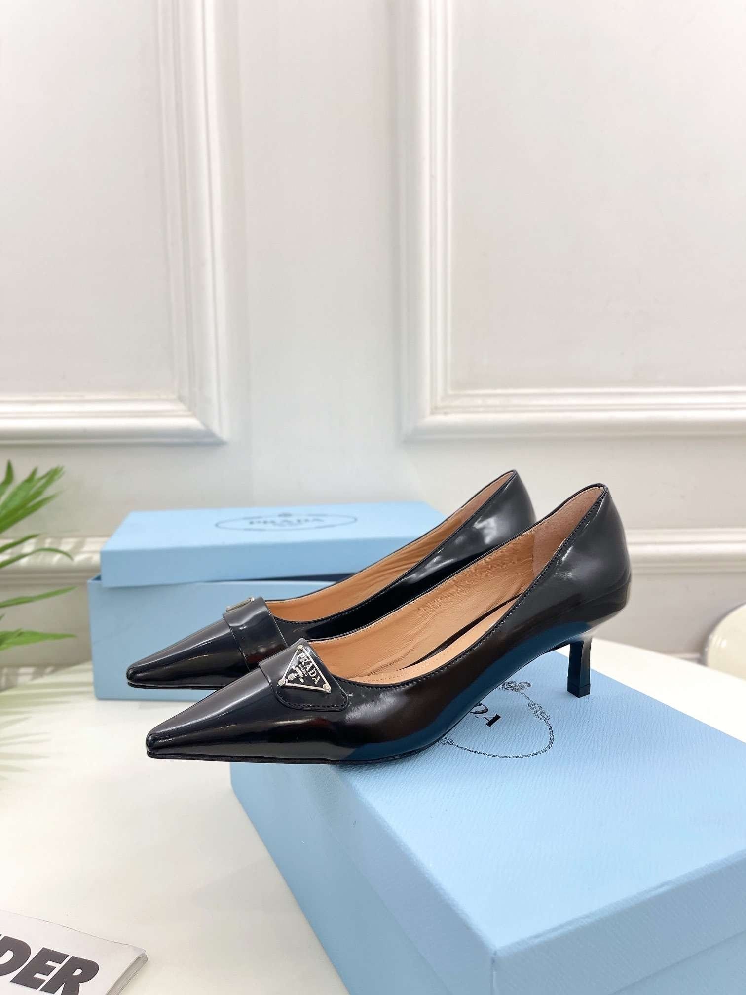 Prada 标志性的花朵造型为这款绑带高跟鞋增添了诱人的美感。传统上用于高端经典鞋履,自 90 年代以来,拉绒在 Prada 系列中以现代设计进行了重新诠释,创造出反映品牌两侧的合成效果