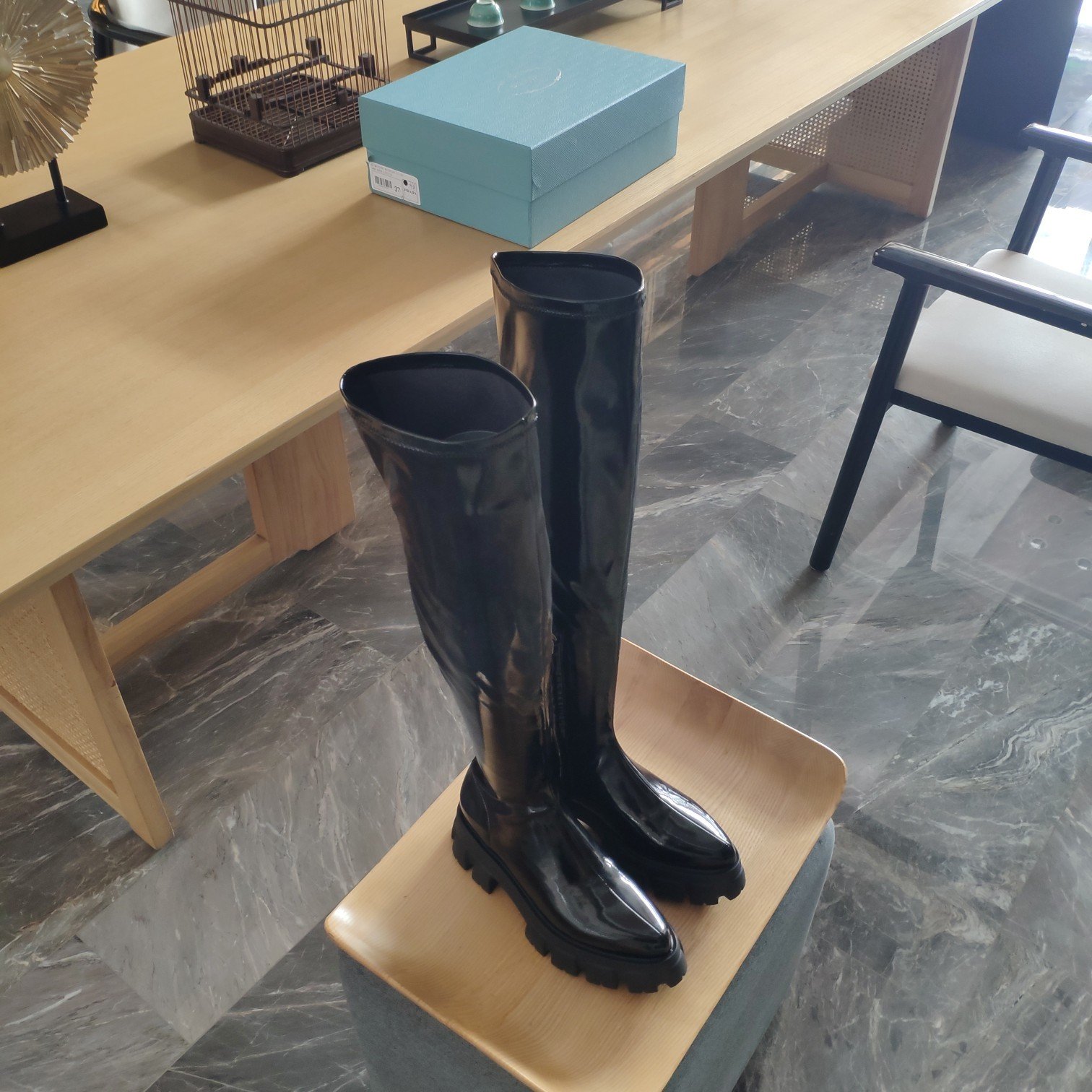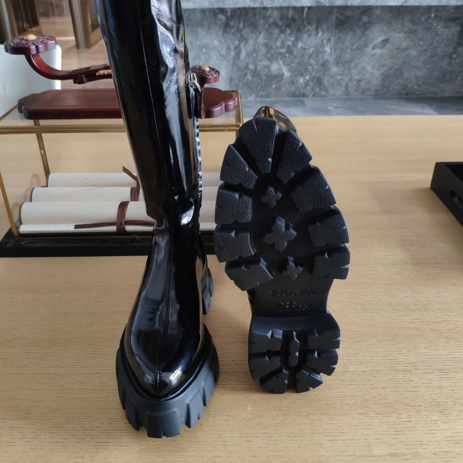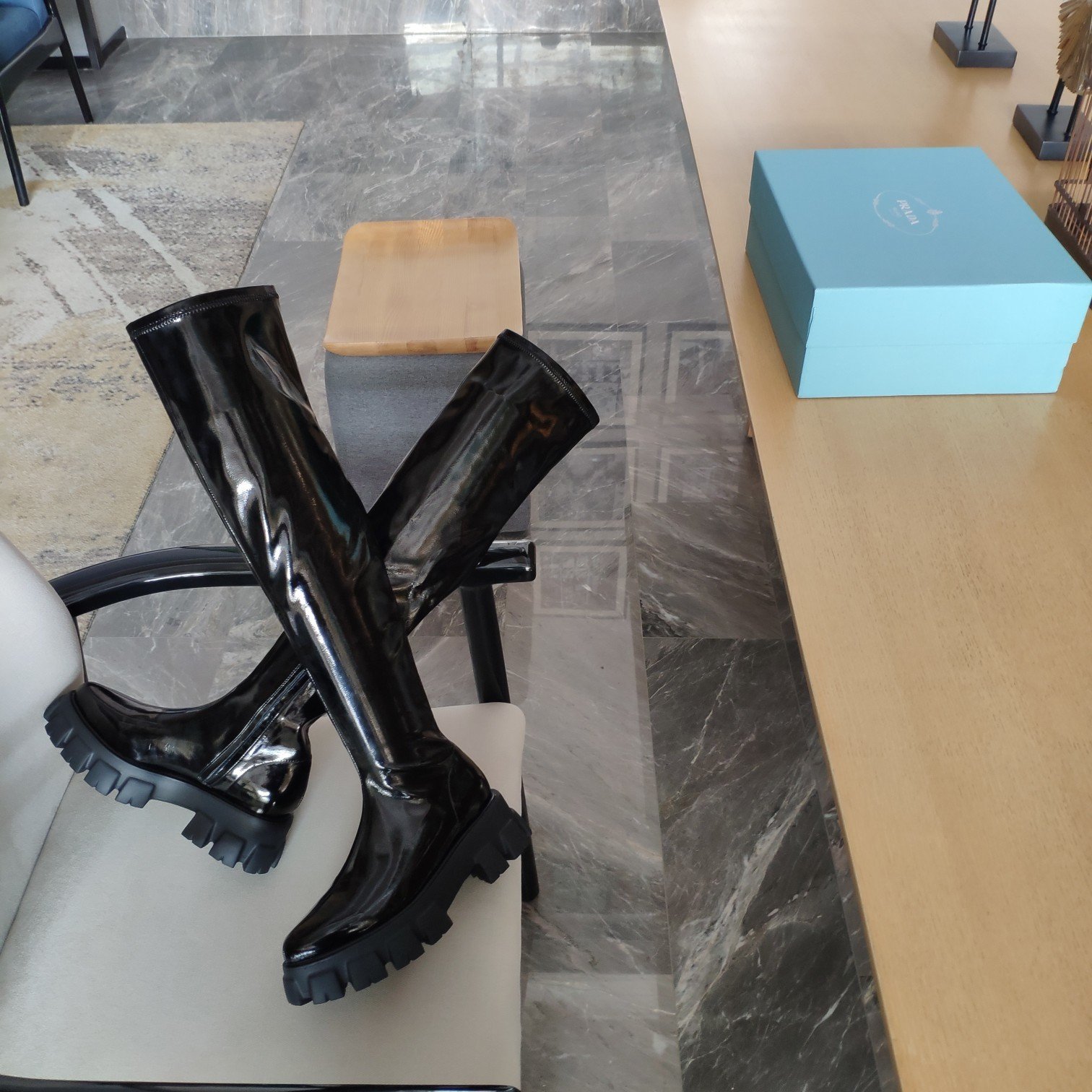Prada 女式闪亮黑色靴子 2.17 英寸/55 毫米 PRD