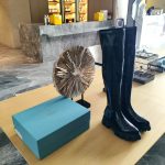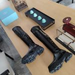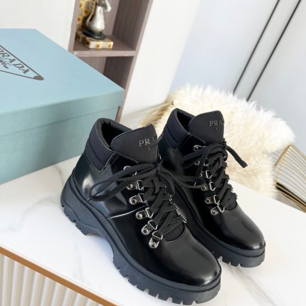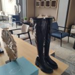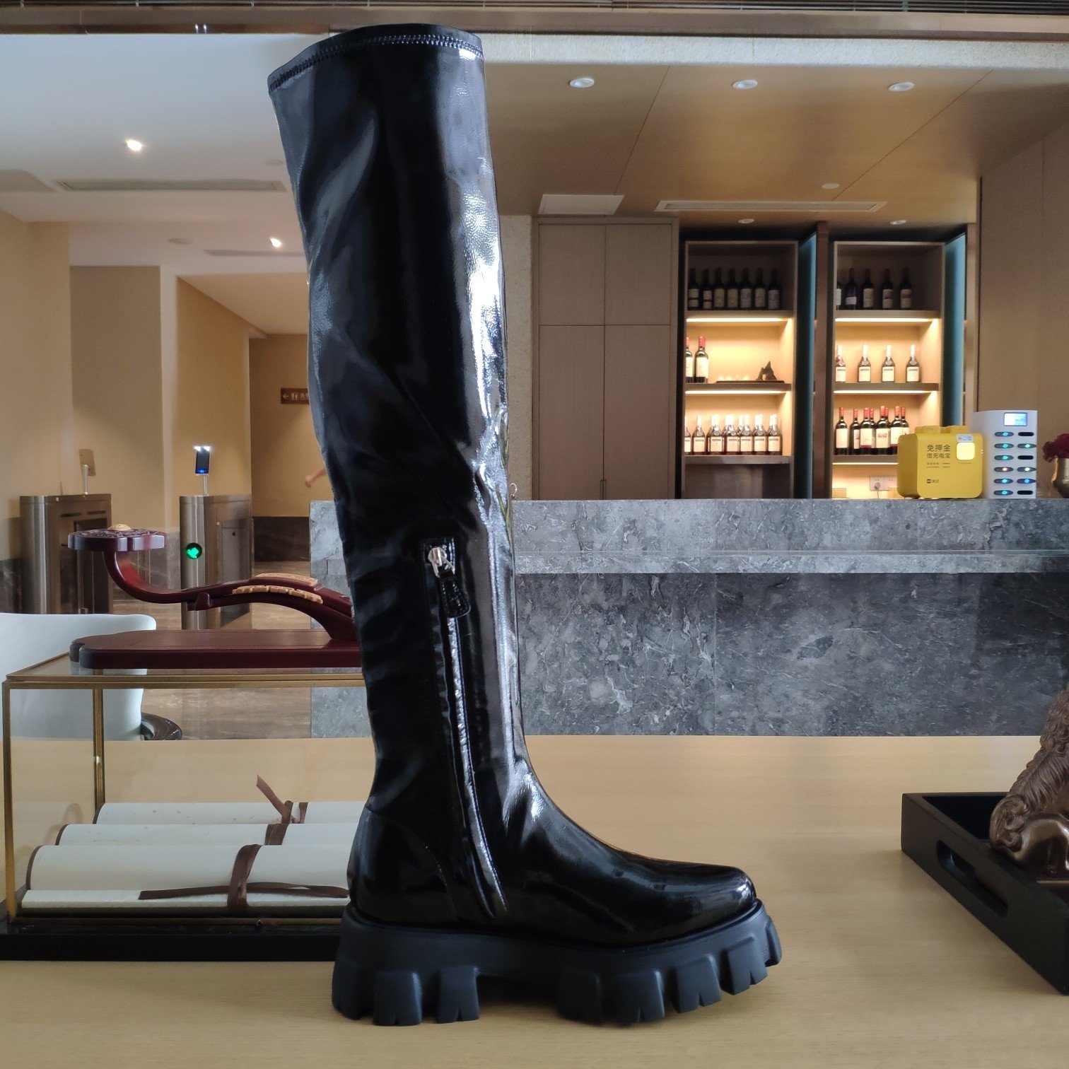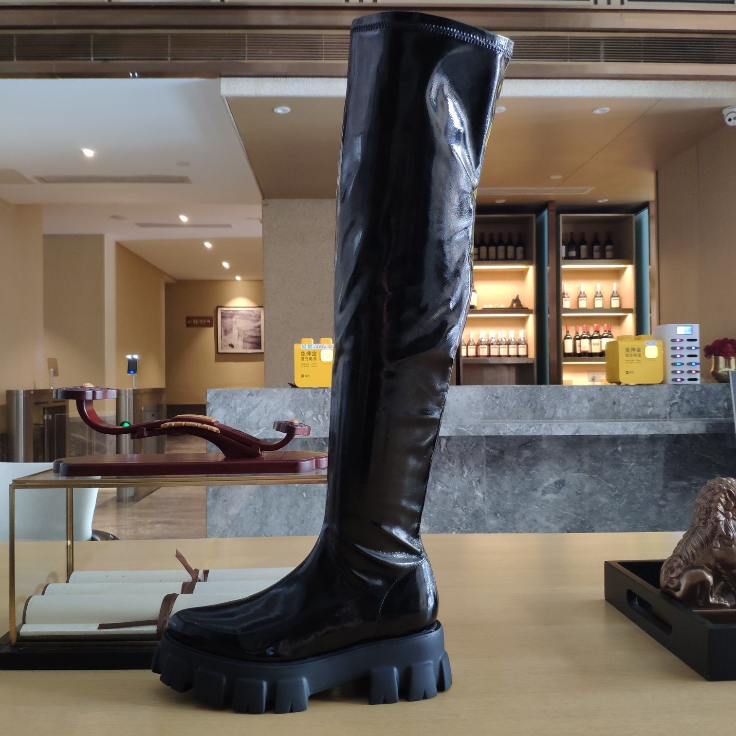Prada 女式闪亮黑色靴子 2.17 英寸/55 毫米 PRD