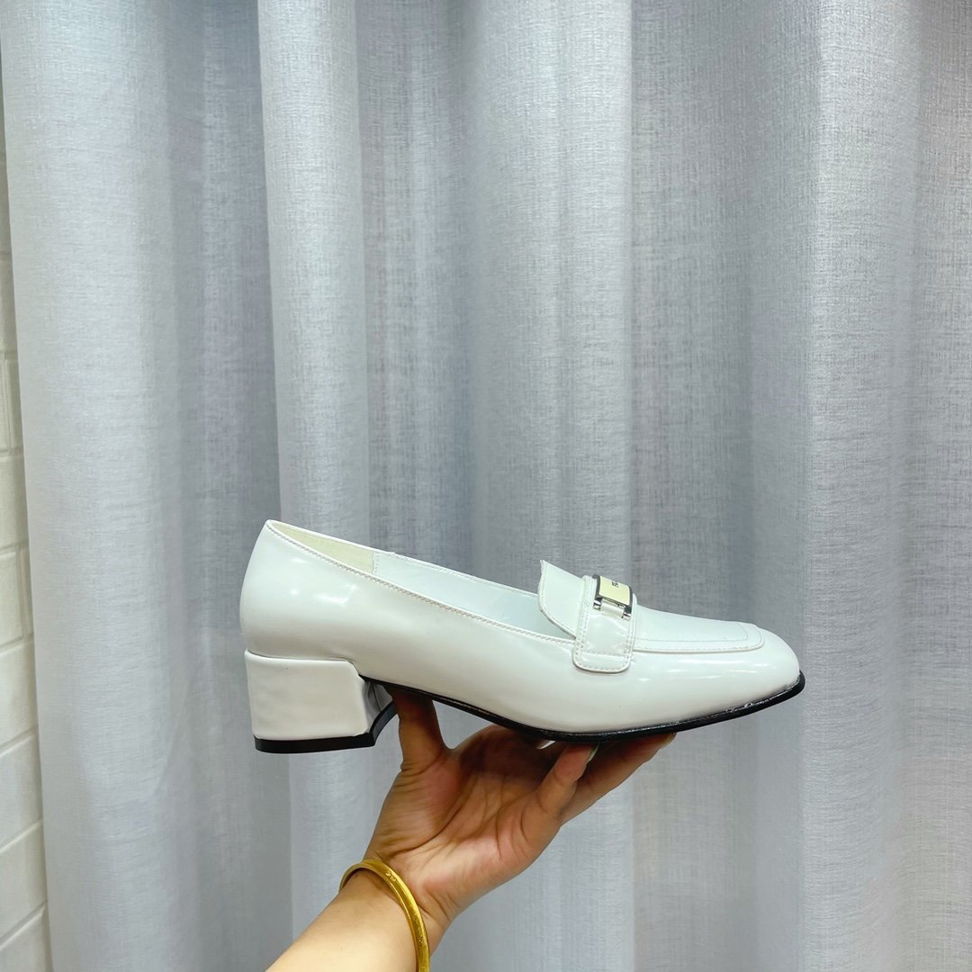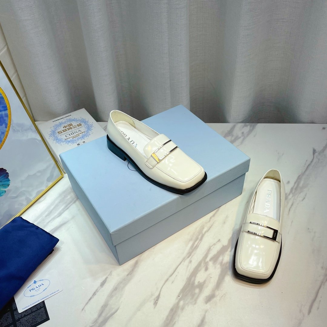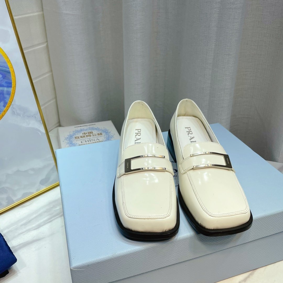 Prada 拉丝乐福鞋 白色 2.17 英寸/55 毫米 女士 PRD