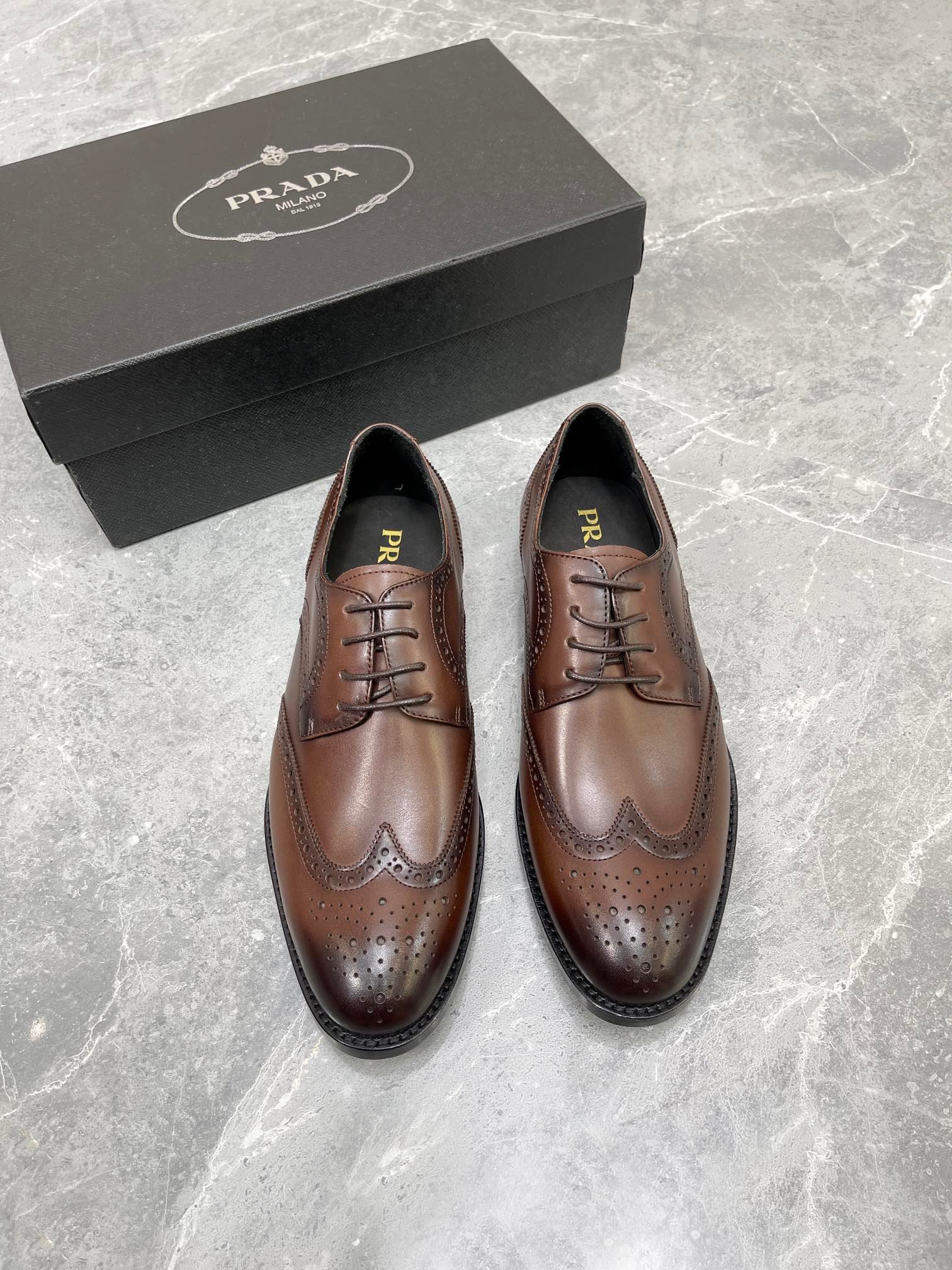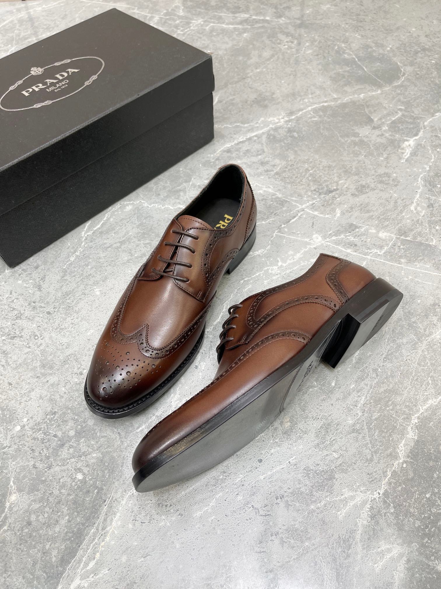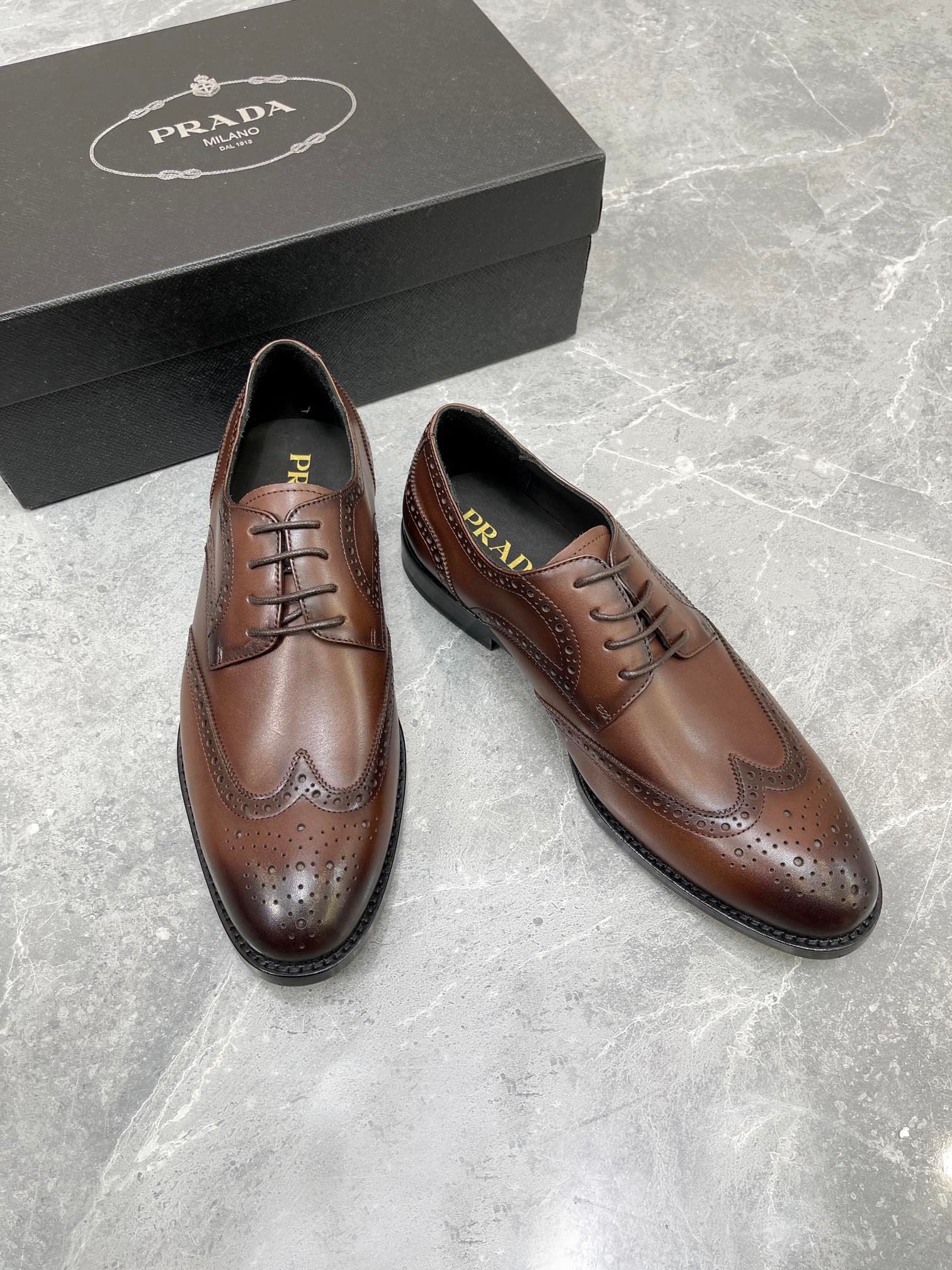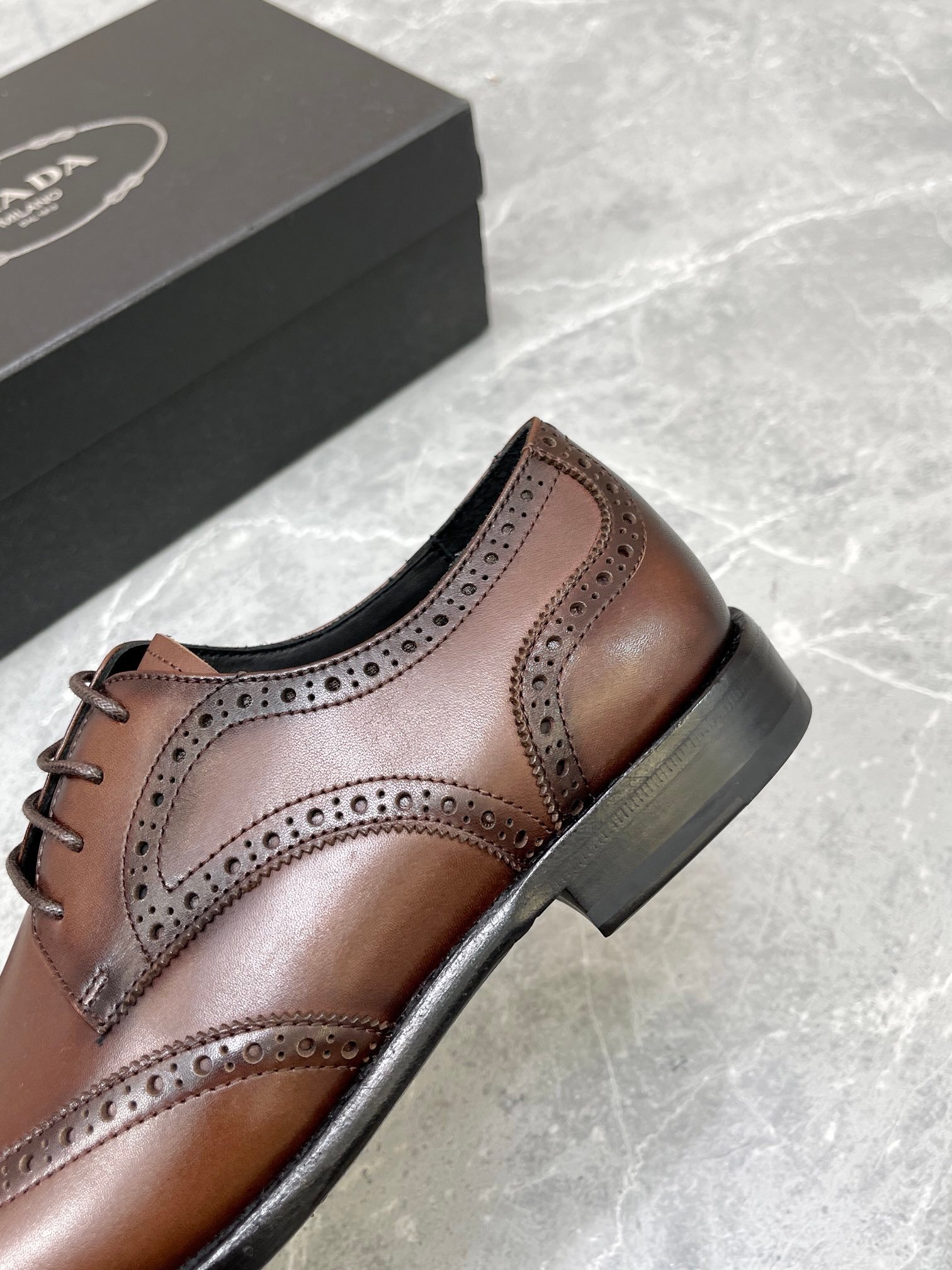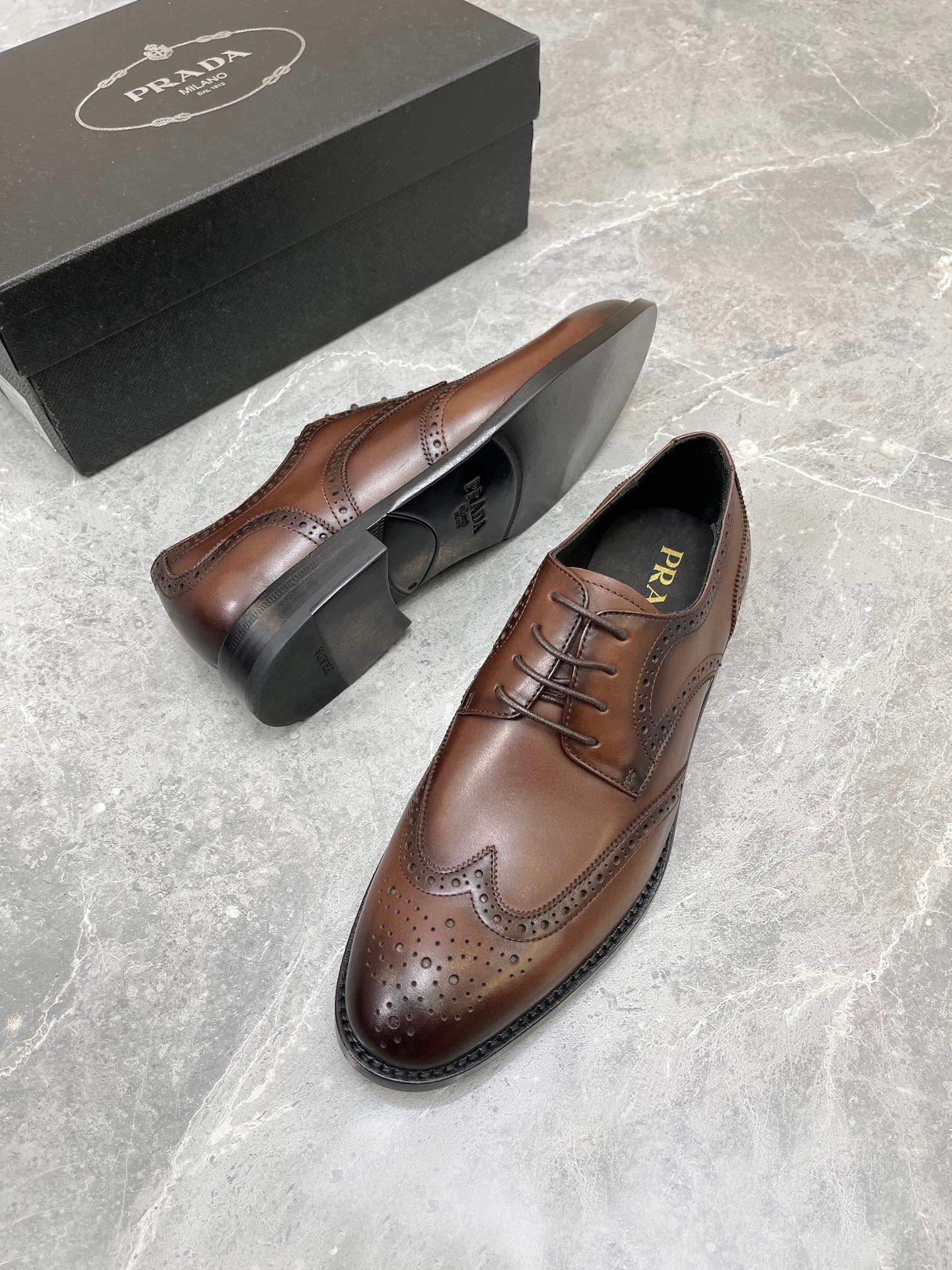 Prada 男士拉绒牛津鞋棕色 1 英寸/25 毫米 PRD