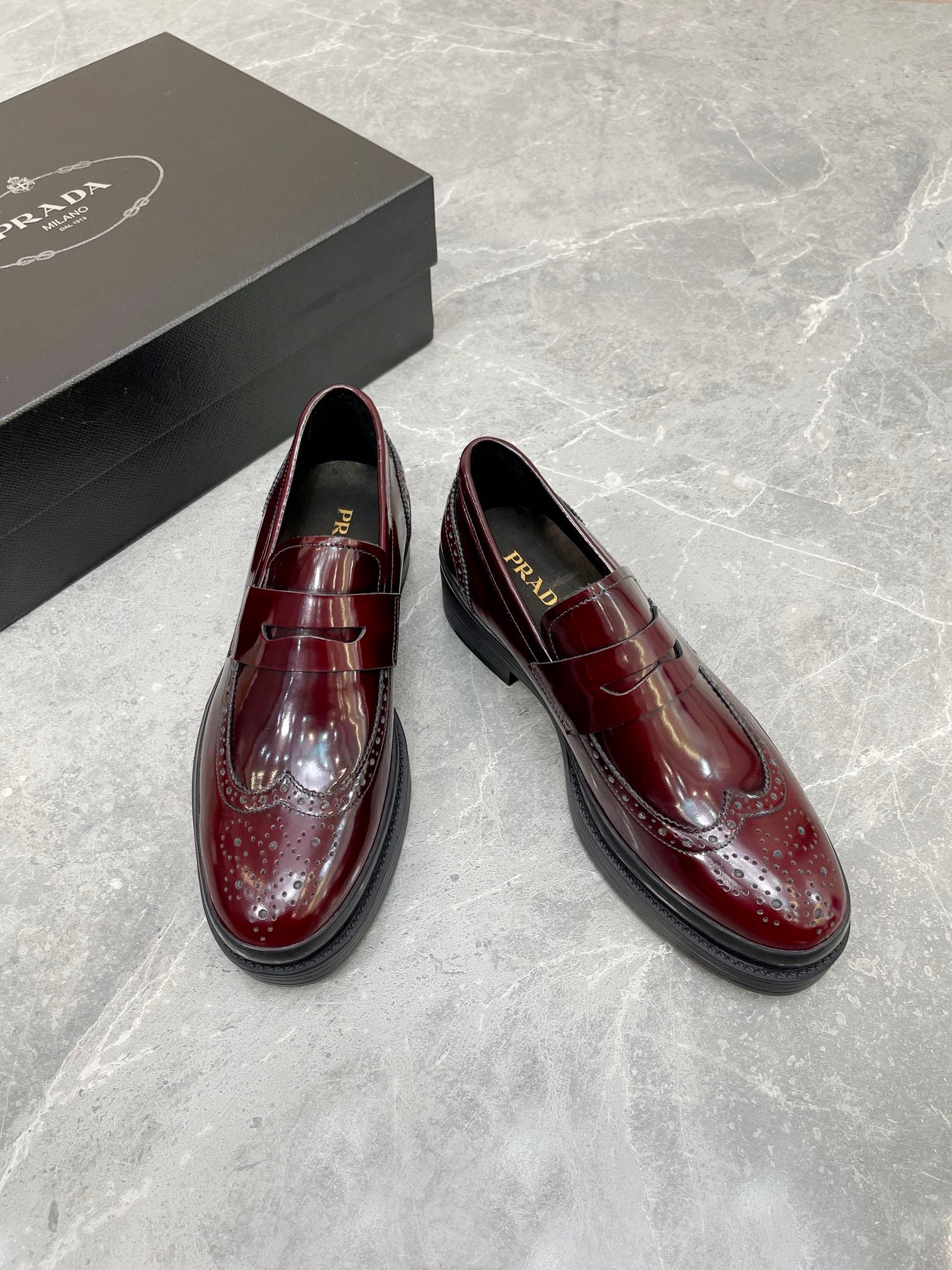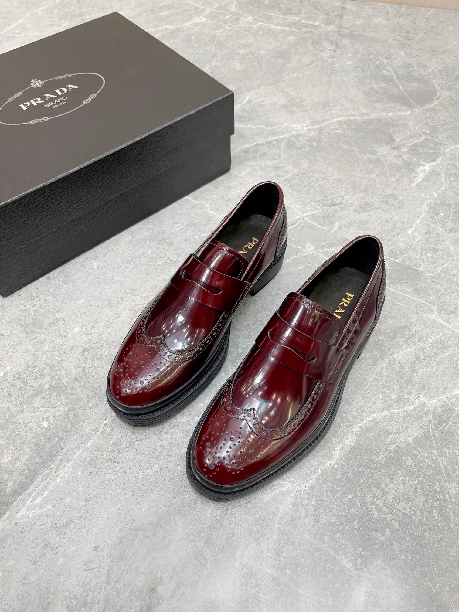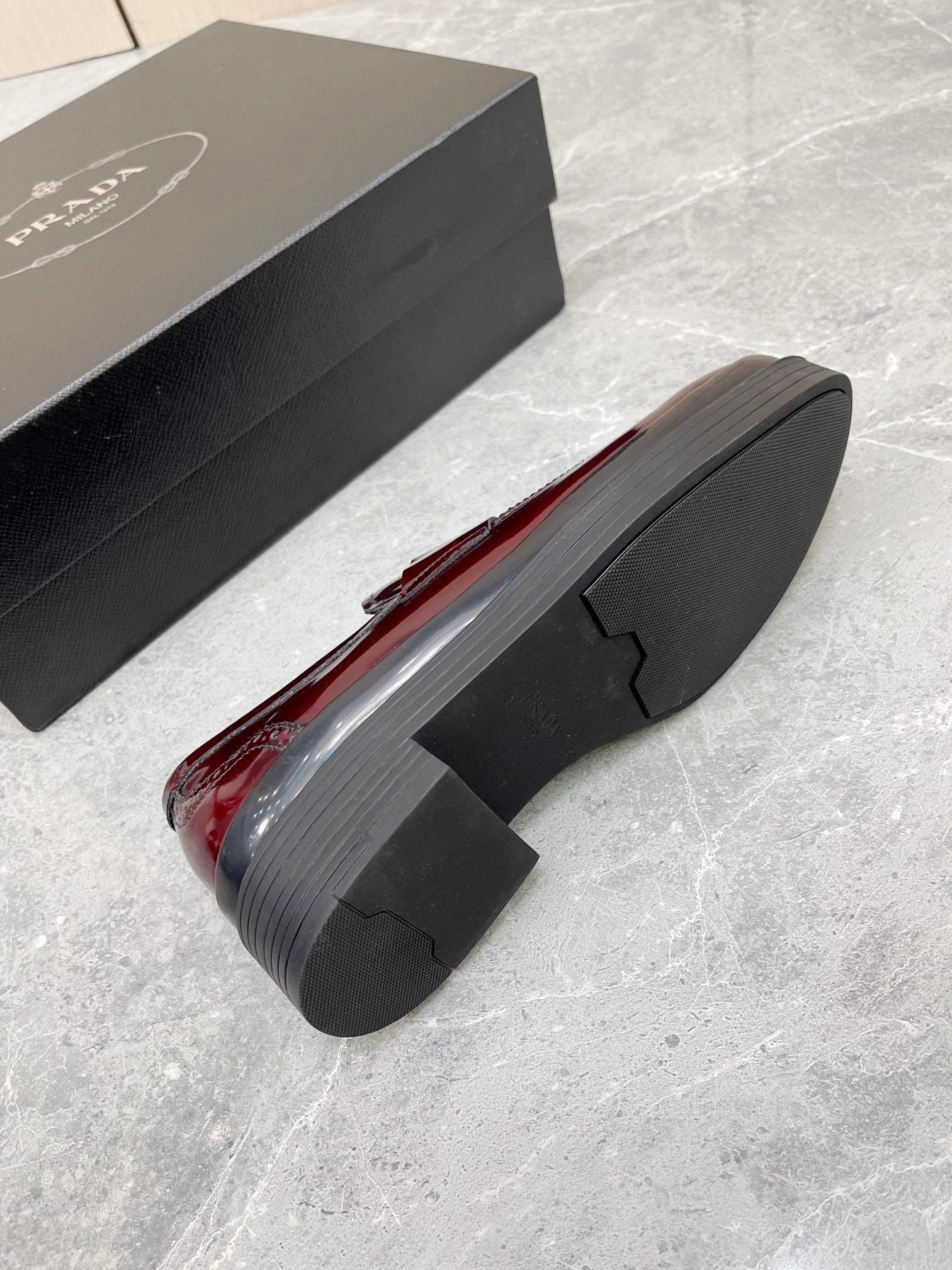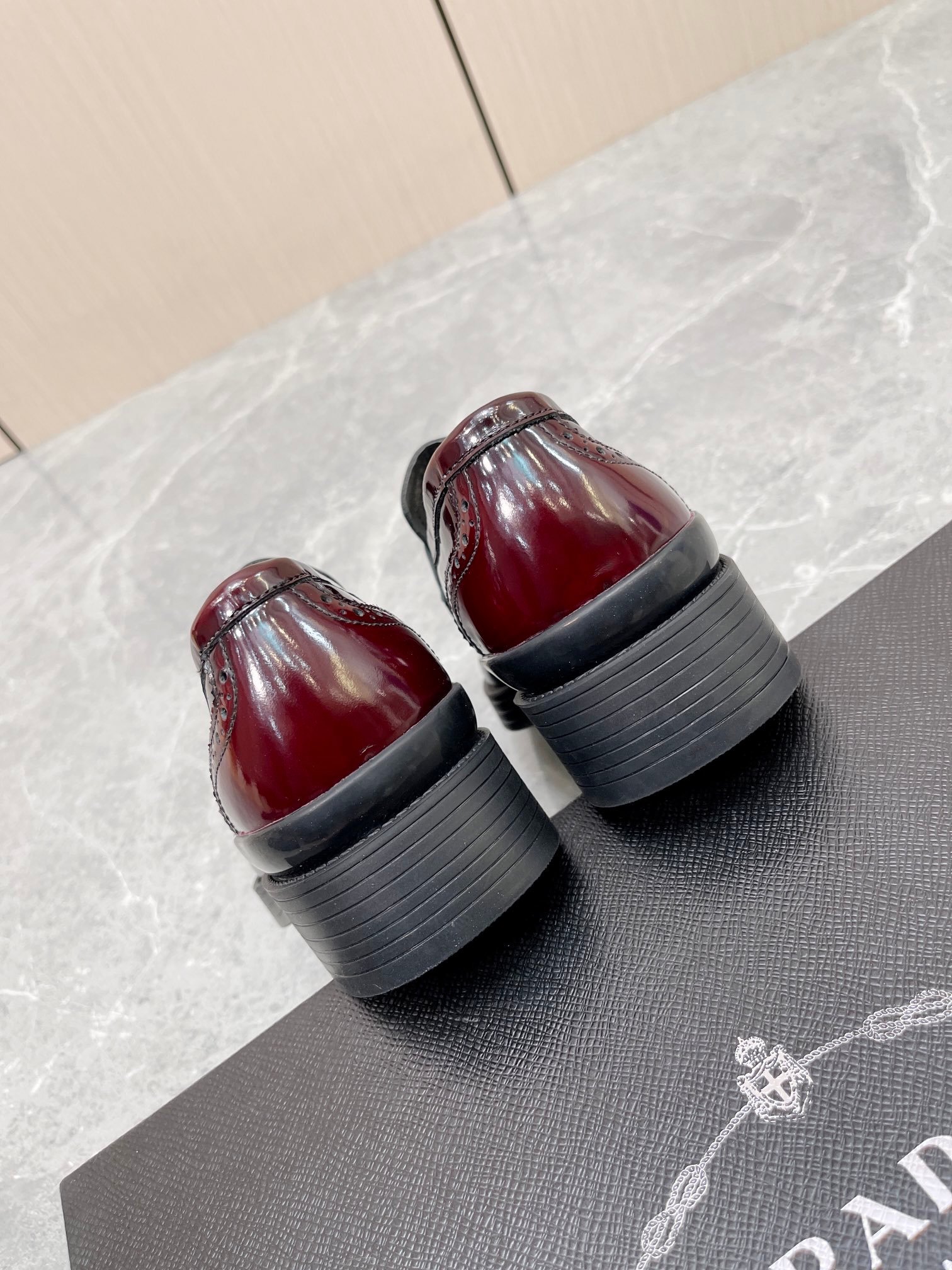 Prada 男士酒红色拉绒鞋 1.6 英寸/40 毫米 PRD