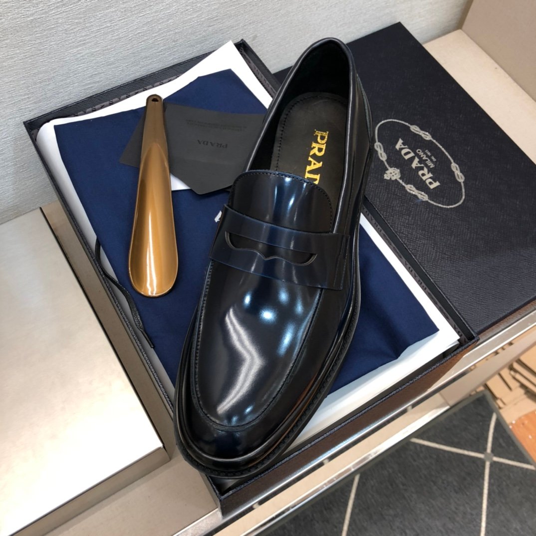 Prada 男士蓝色拉丝乐福鞋 1.6 英寸/40 毫米 PRD