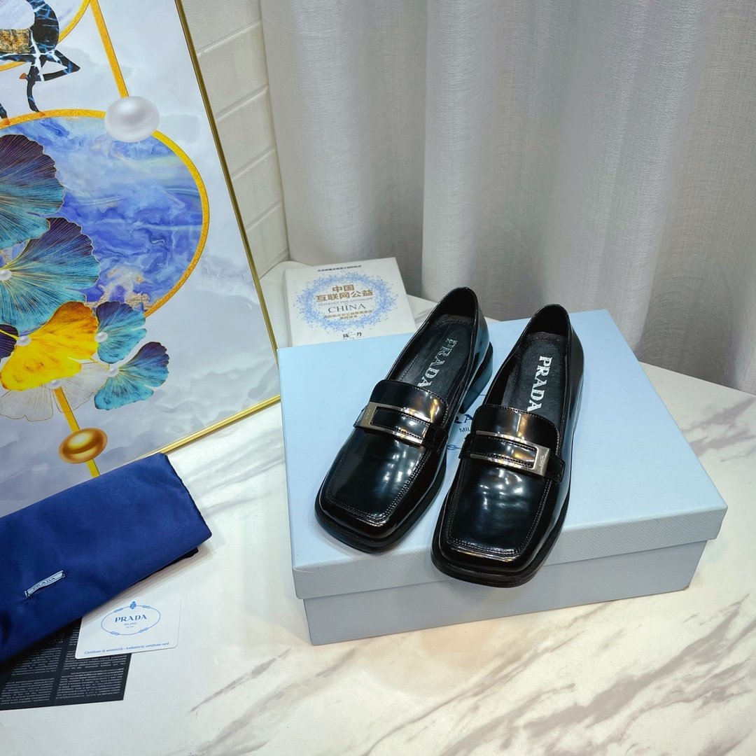 Prada 黑色拉丝乐福鞋 2.17 英寸/55 毫米 女式 PRD