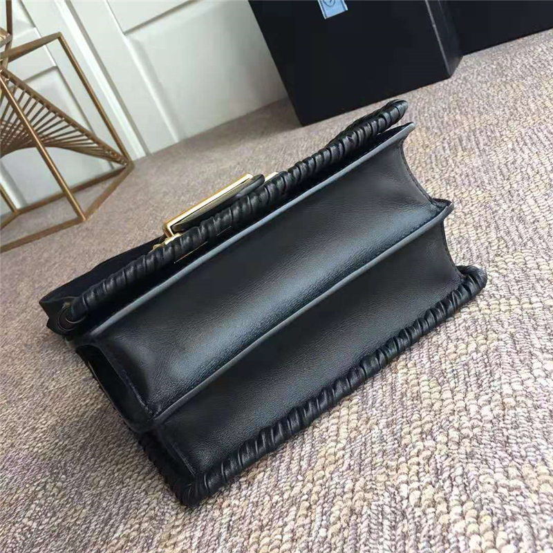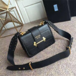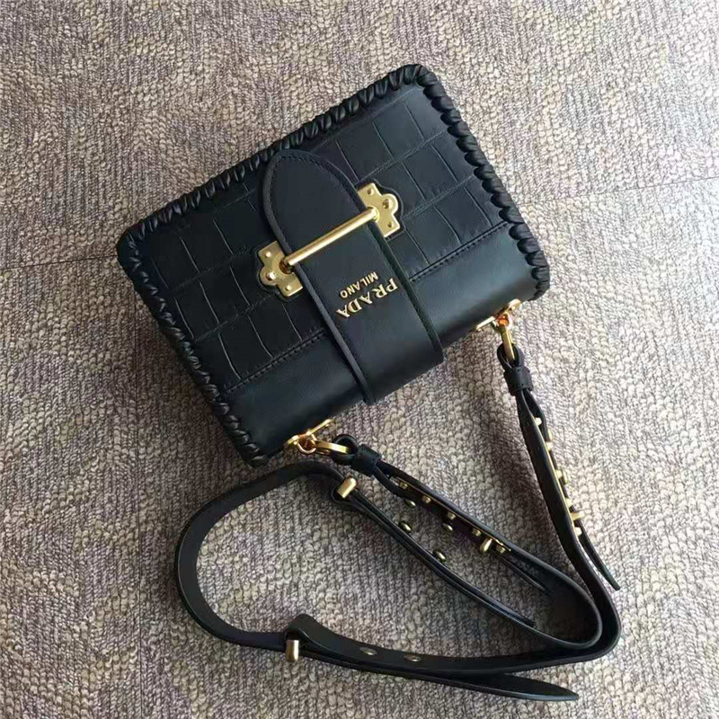 - Prada cahier女袋 鳄鱼纹牛皮 编织设计包边 普拉达单肩斜挎包 黑色