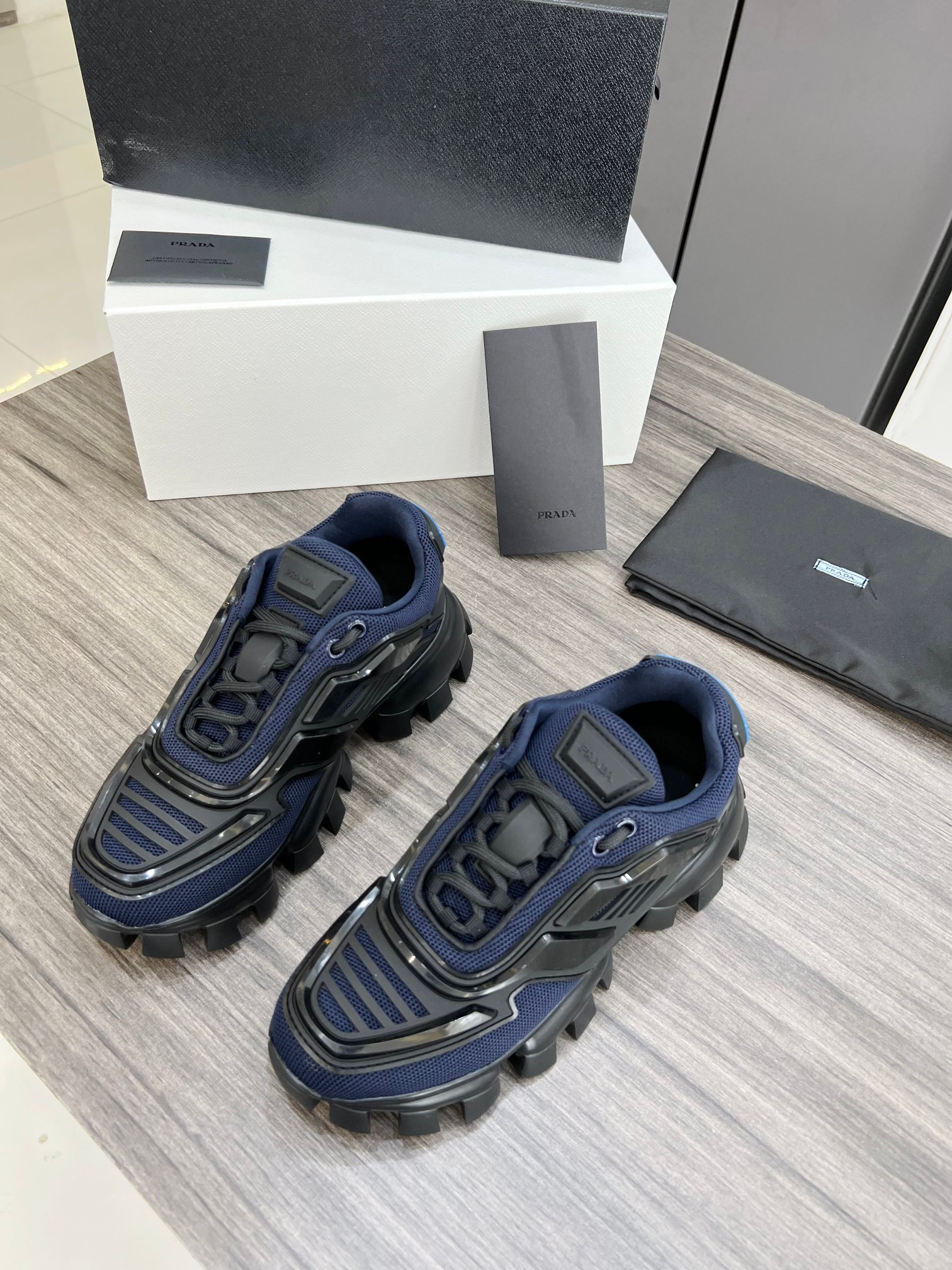 Prada Cloudbust Thunder 女式黑色和蓝色运动鞋 PRD