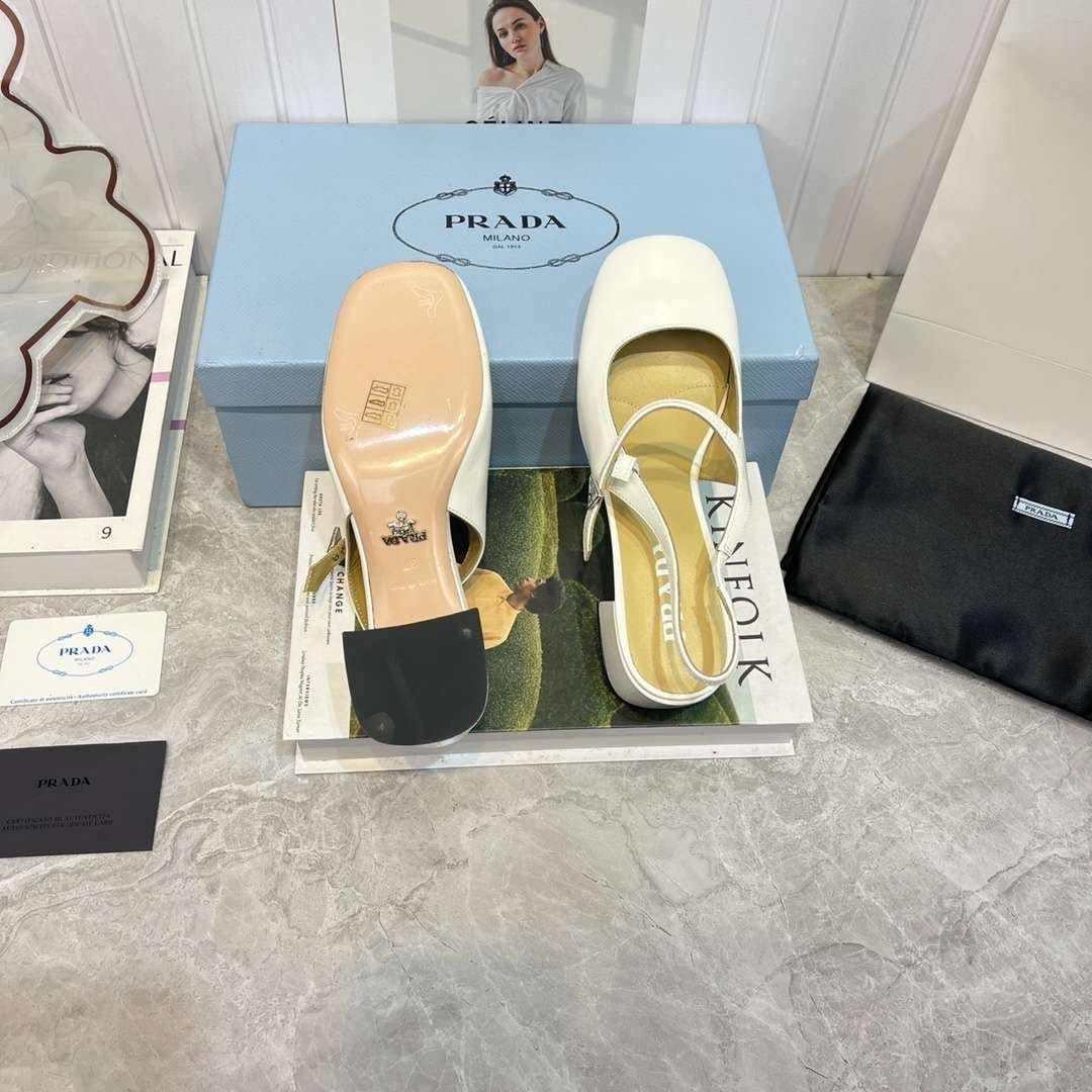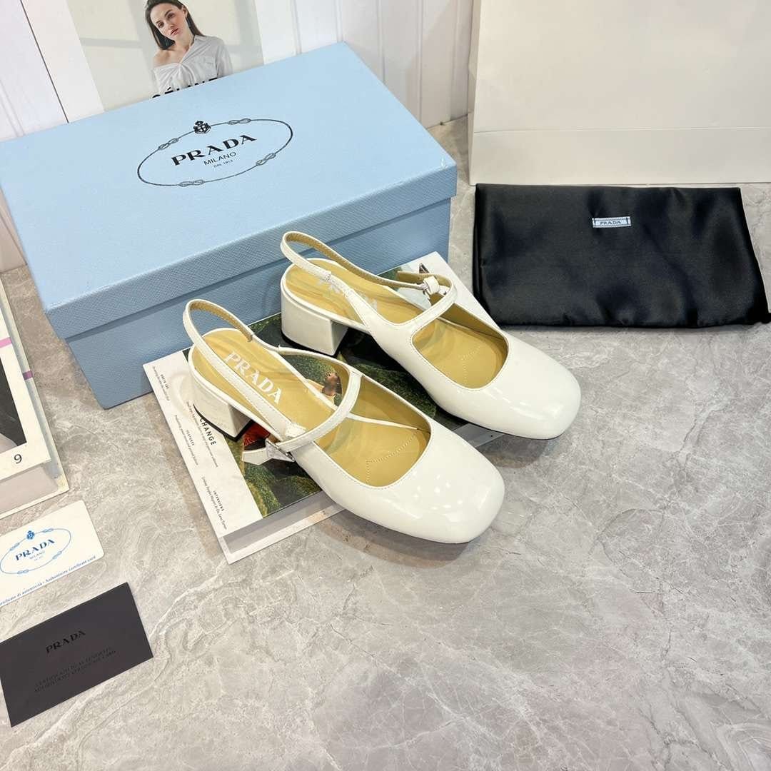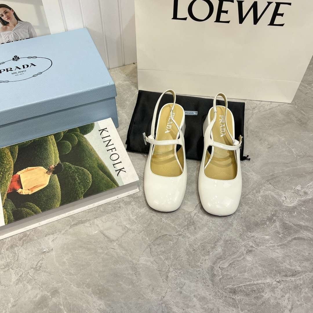 Prada 标志性的花朵形状为这些带子高跟鞋增添了诱人的美感。传统上用于高端经典鞋履,自 90 年代以来,拉绒在 Prada 系列中以现代设计进行了重新诠释,创造出反映品牌两侧的合成效果