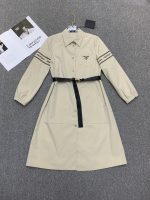Prada 女士长款空心连衣裙霜